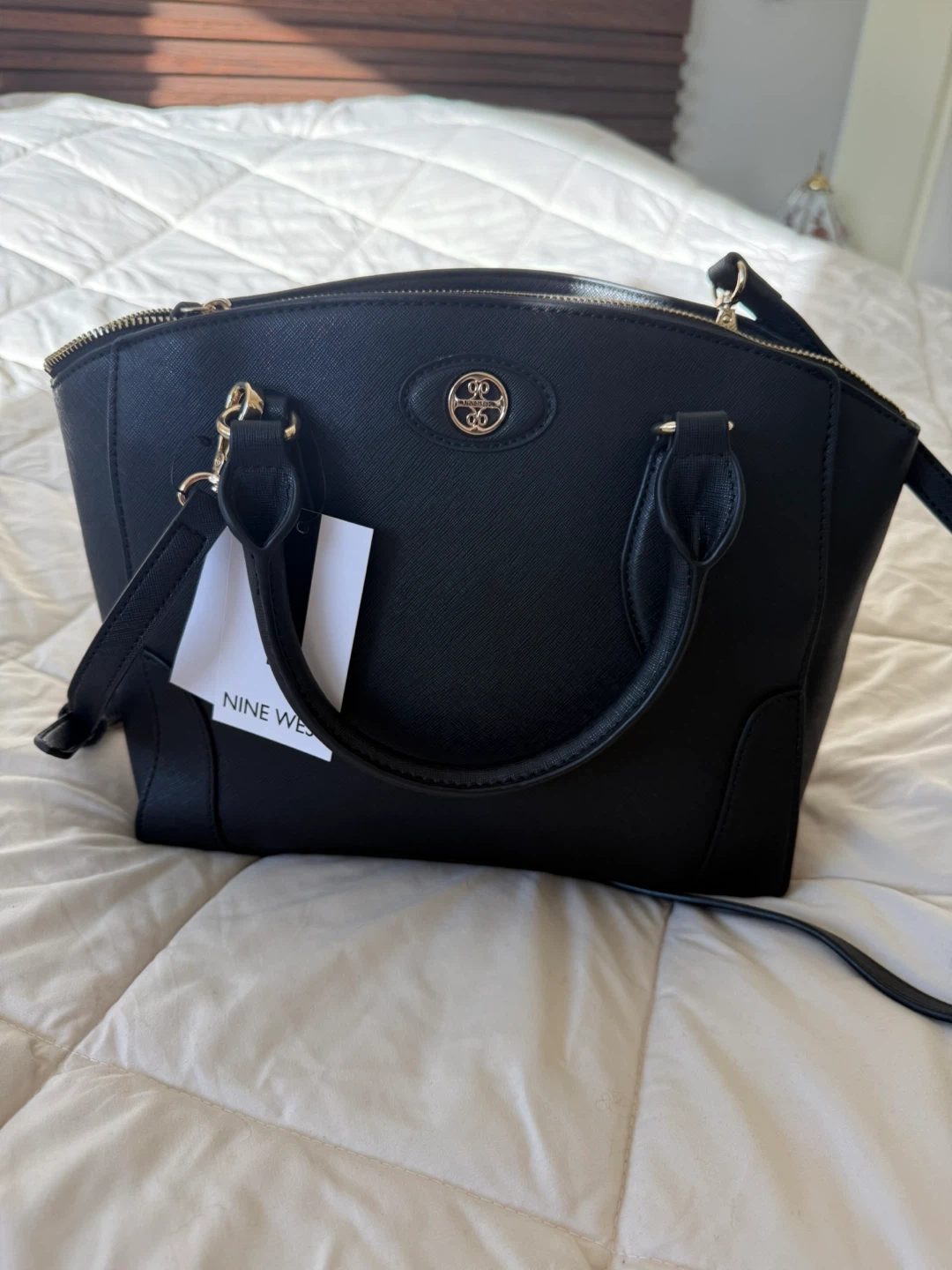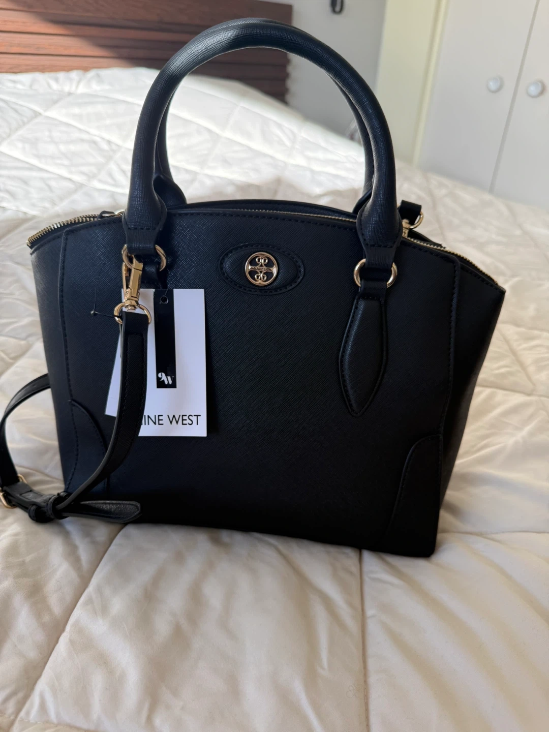 Nine West Black Structured Satchel Crossbody Purse – New