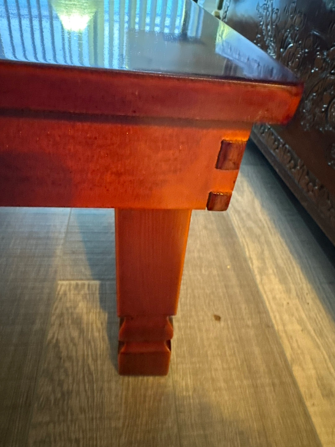 * Surface: Features a stunning, mirror-like high-gloss Ochil (natural lacquer) finish that highlights the beautiful, deep natural wood grain.