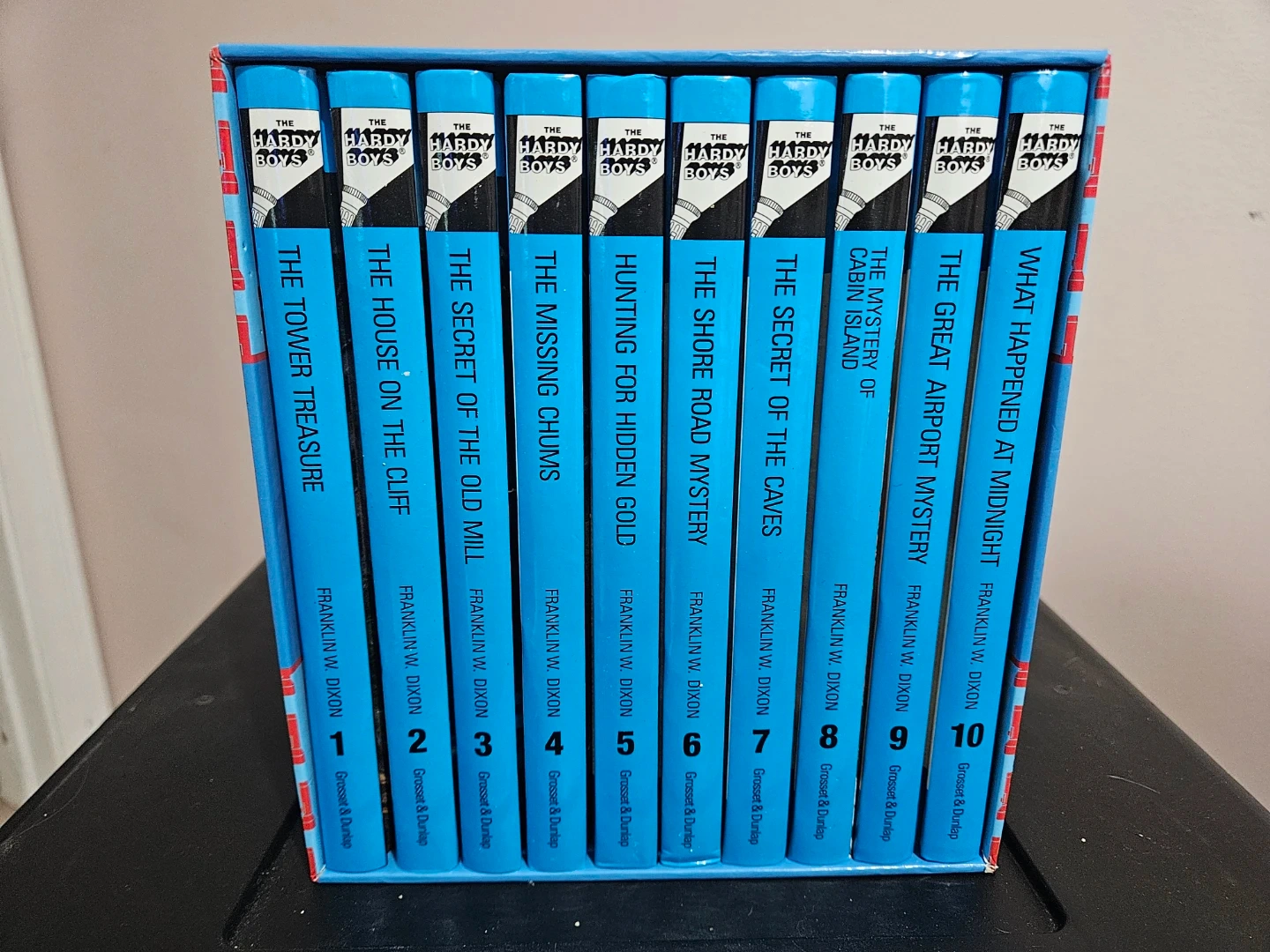 This set includes 10 classic Hardy Boys mysteries. Books are in a blue case. They're from Franklin W. Dixon and Grosset & Dunlap. This collection is great for young readers getting into mystery novels.