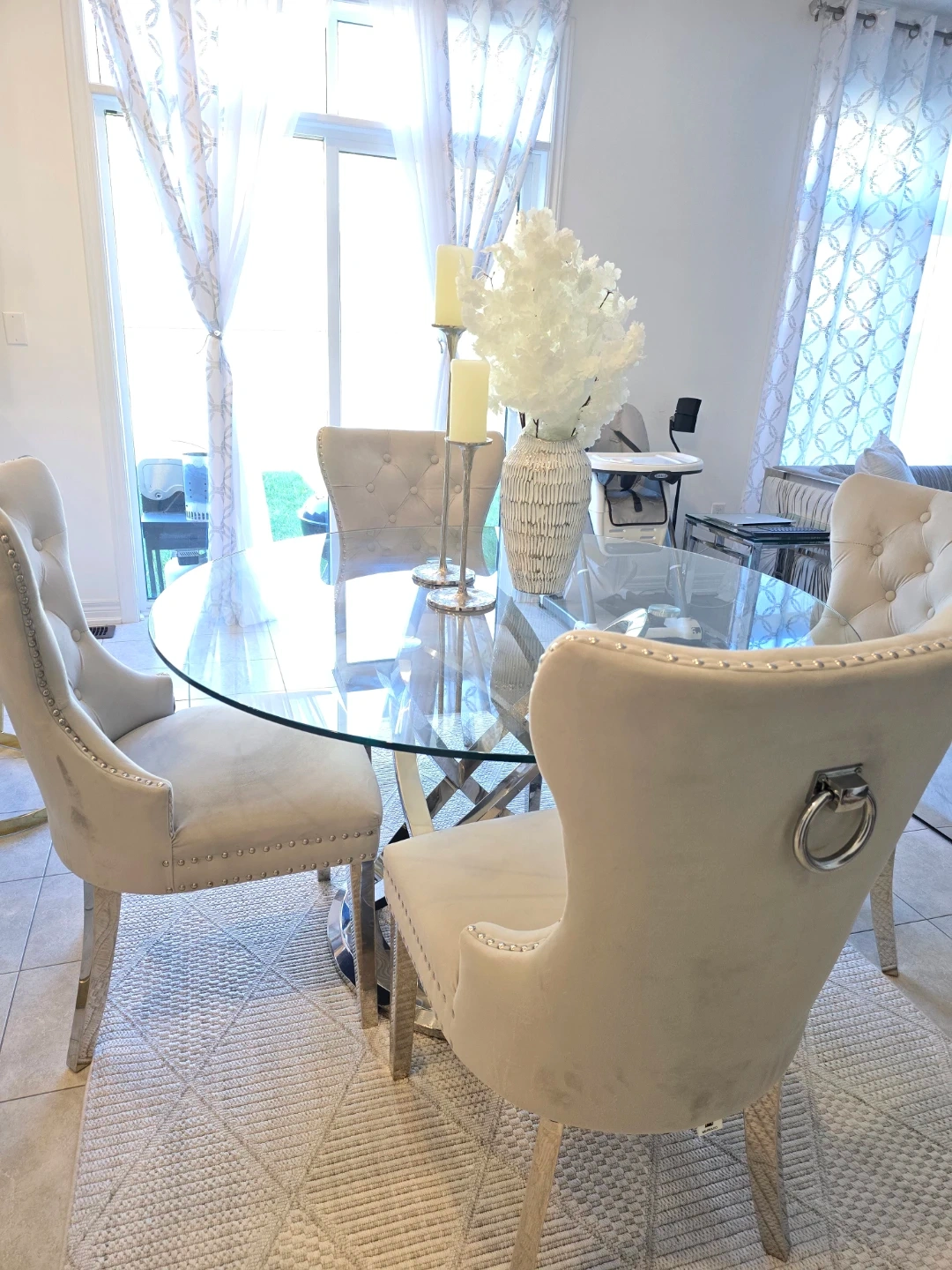 Glass Dining Table with Upholstered Chairs