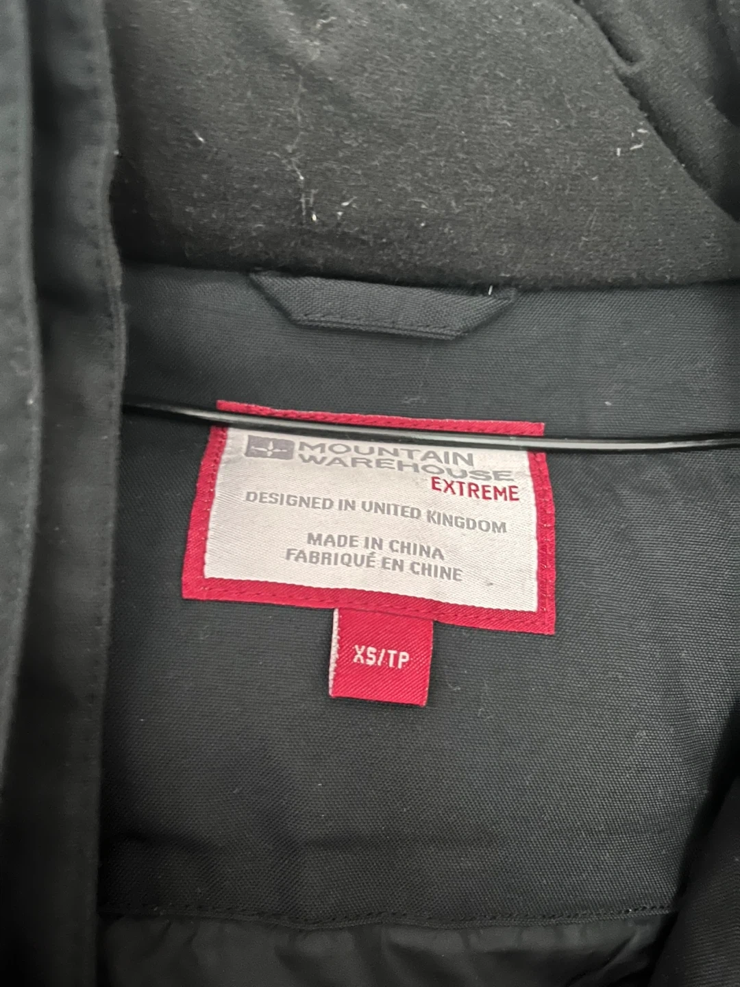 This Mountain Warehouse Extreme parka jacket is black and designed for warmth. It's a size XS