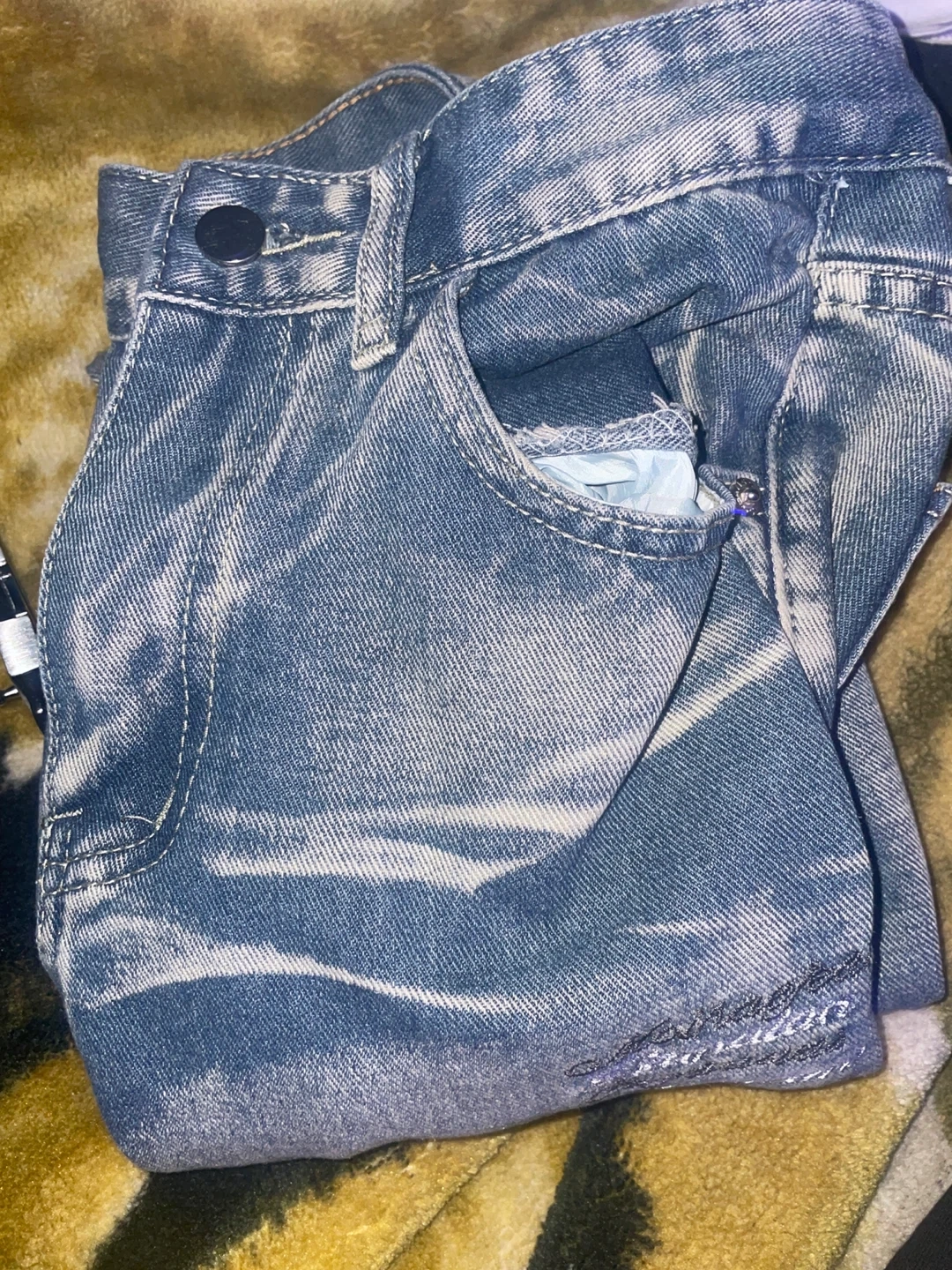 These AMIRI denim jeans feature a distressed wash and eye-catching varsity-style patches. They're made from classic denim fabric. This unique pair is great for adding a standout element to your casual outfits!