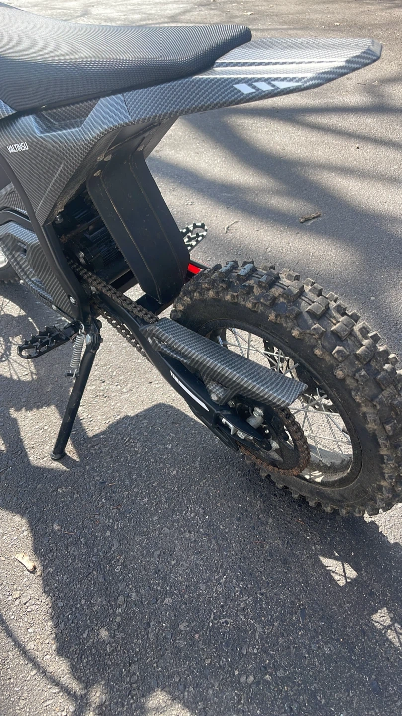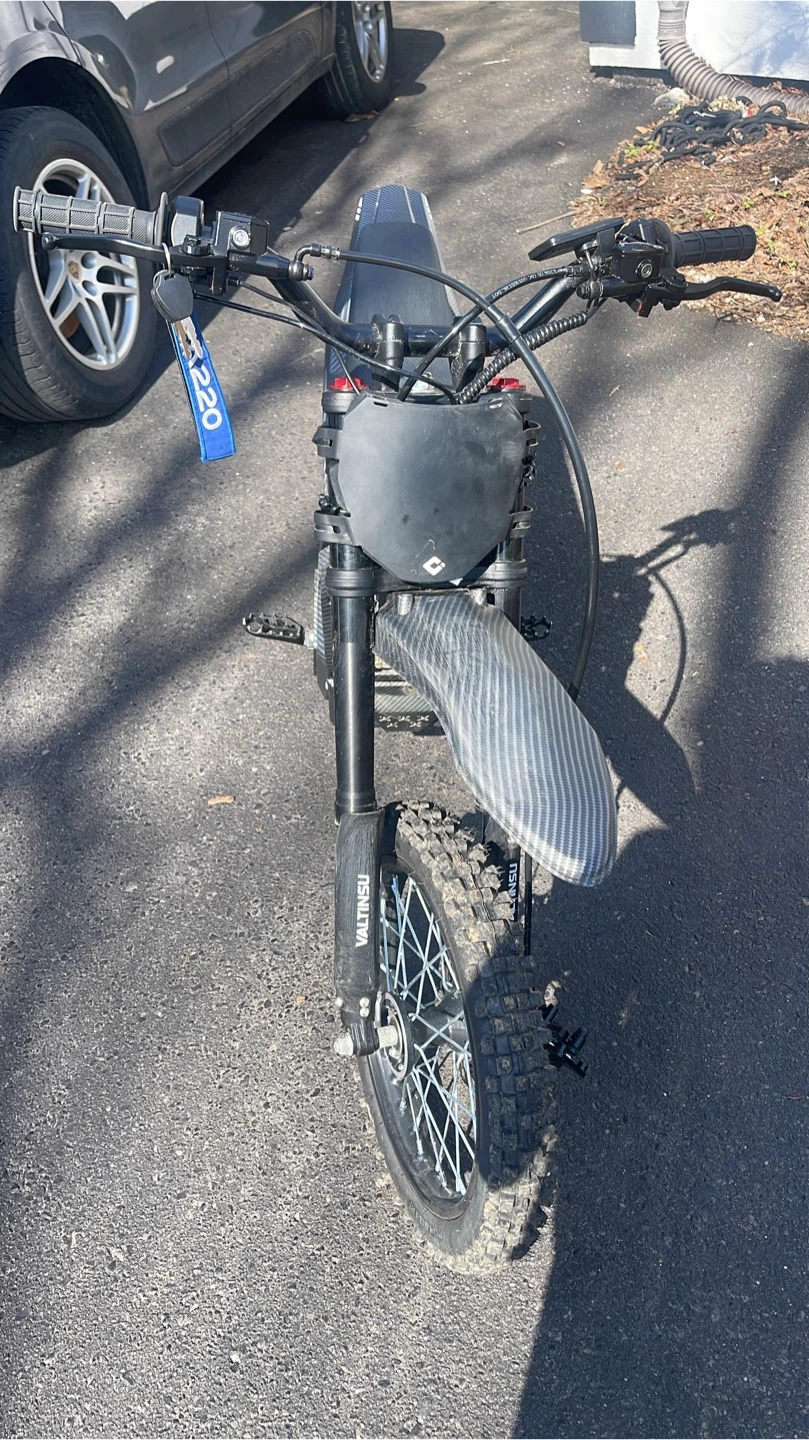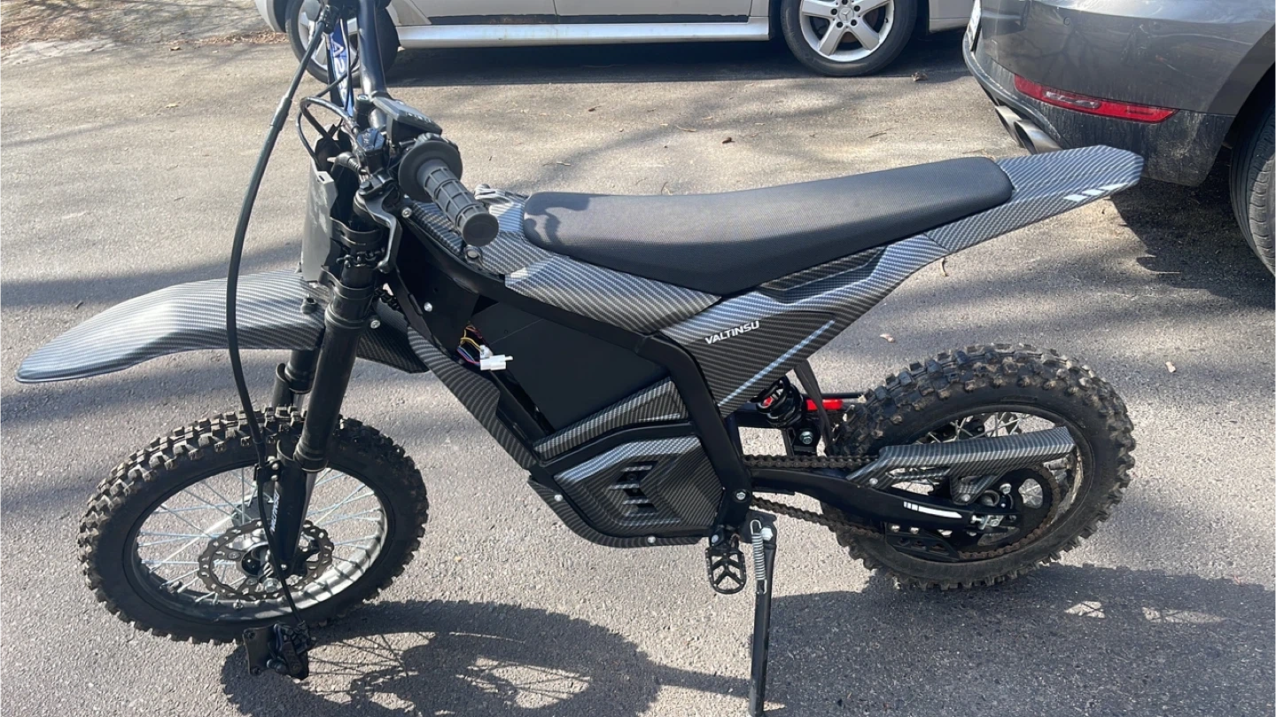 VALTUNSU electric dirt bike with a carbon fibre-look finish. It's a fun, fast ride for off-road adventures. This bike is designed for dirt track use. Just a new controller and it will be good to go. Trades are excepted