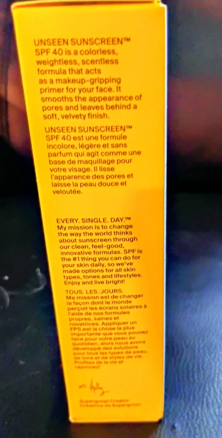 Supergoop! Unseen Sunscreen SPF 40. Broad spectrum sunscreen with a natural finish. Water-resistant for 40 minutes. Expiration 03/2027.