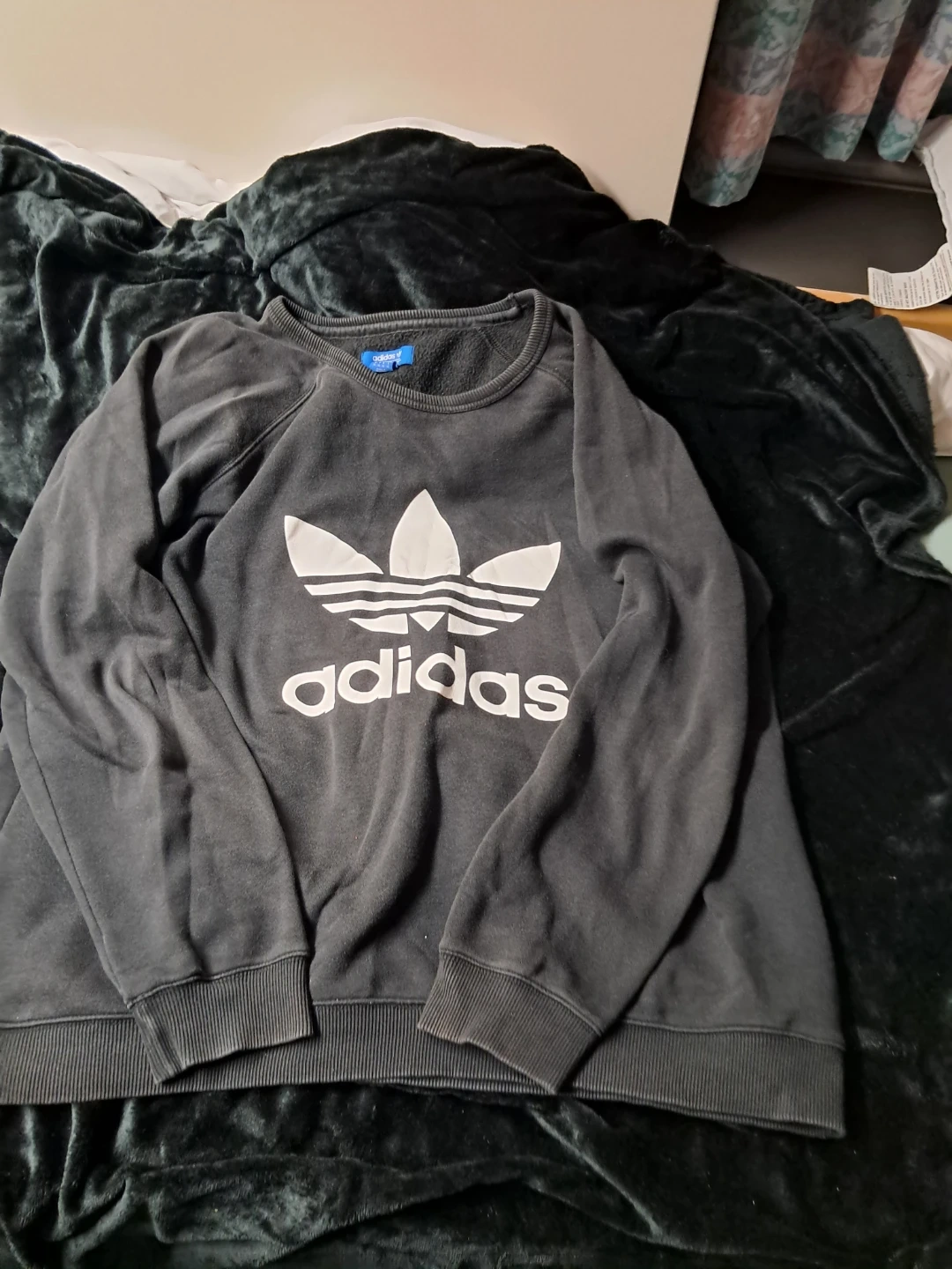 Black Adidas crewneck sweatshirt with the iconic Trefoil logo. It's a size XL. Great for casual wear!