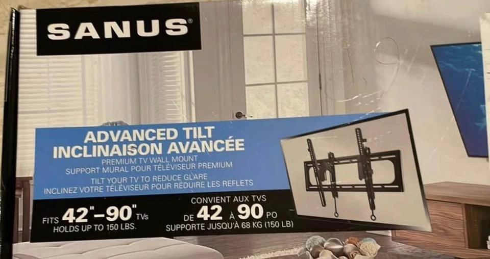 Achieve the perfect position for your television with this Sanus Advanced Tilting TV wall mount. This versatile mount supports most 42" to 90" TVs up to 68kg. You can adjust this tilting mount with no tools to the ideal viewing angle. Made from sturdy steel, it offers strong and lasting quality. Model BLT2-B3. Mint condition, used for only a few months. Comes in original box.