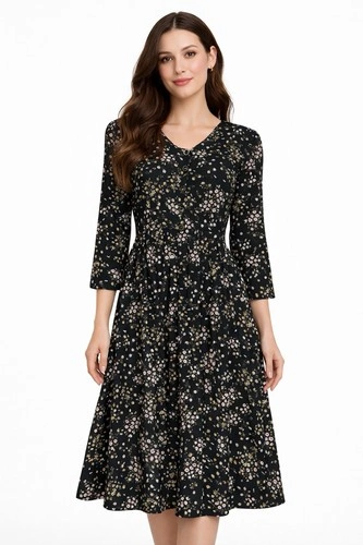7D Fashion Wear Women’s Floral Midi Dress XXL Dark Green NWT