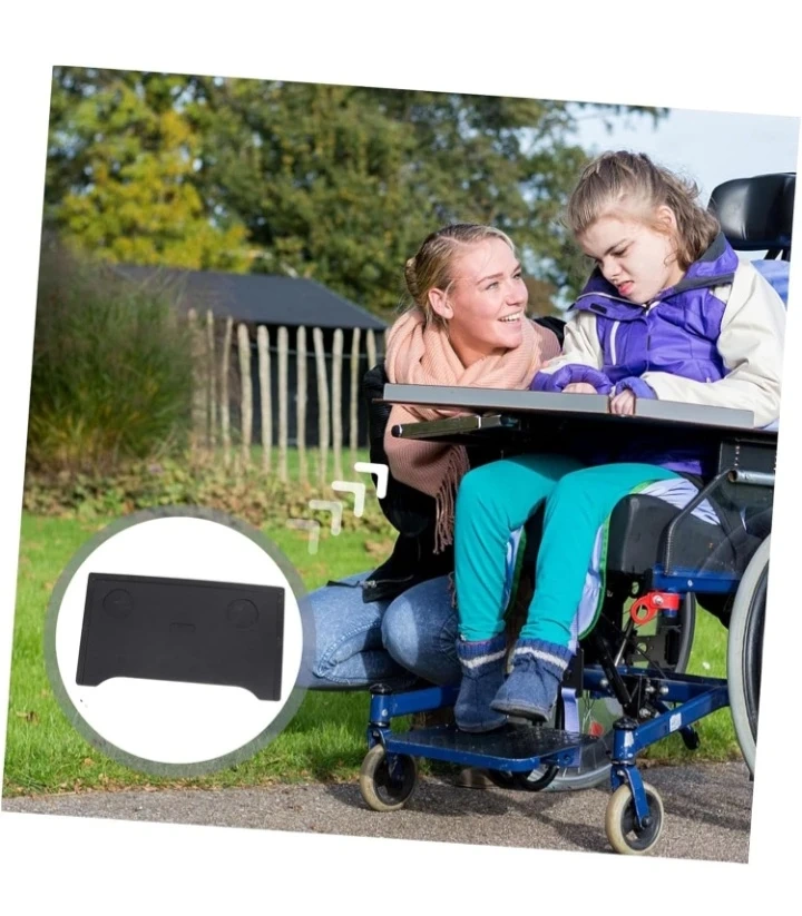 This wheelchair tray attaches easily to your chair. It's designed with a wide surface and cup holders. The black tray is lightweight and practical for eating or resting items.