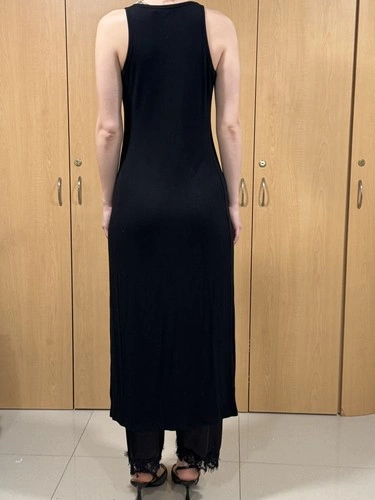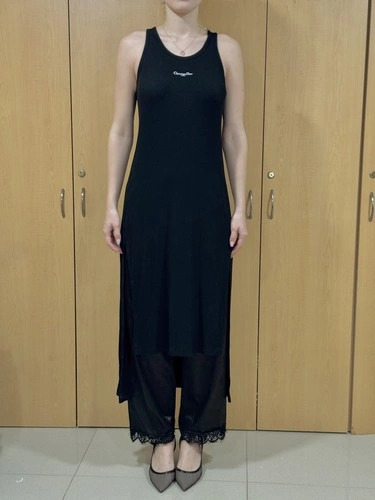 This sleeveless black ribbed dress is the definition of effortless elegance. Clean lines, a flattering straight cut, and subtle Christian Dior Paris embroidery create a timeless piece that speaks quietly — but confidently.