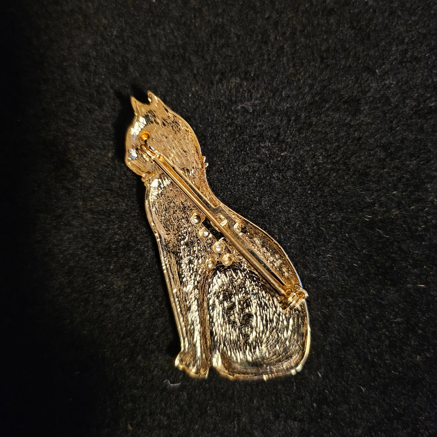 Add a touch of feline flair to your wardrobe with this charming cat brooch! It's the purr-fect accessory for any cat lover. Don't miss out—if the ad's up, it's up for grabs!