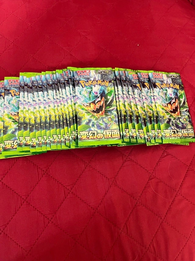 Offering brand new Pokemon TCG Mask of Change booster packs from the latest Japanese set. These packs are factory sealed and great for your collection or to try pulling rare cards. Each pack contains 5 cards. Priced at $5 per pack when buying all. If the ad is up, the packs are available!