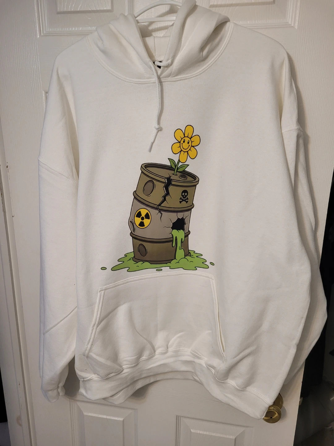 This Hysteric Glamour x TOXICKIND hoodie features a graphic print of Toxic Teddy with a gas mask on the back and a biohazard barrel design on the front . It's made of a comfortable cotton blend. This pullover style comes with a front pouch pocket and an adjustable drawstring hood.