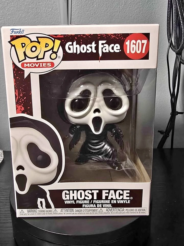 This is a Funko Pop! Movies vinyl figure of Ghost Face, number 1607. The figure comes in its original box. It's a collectible item for fans of the horror franchise. Pick-up only. Serious inquiries only. Cash only.