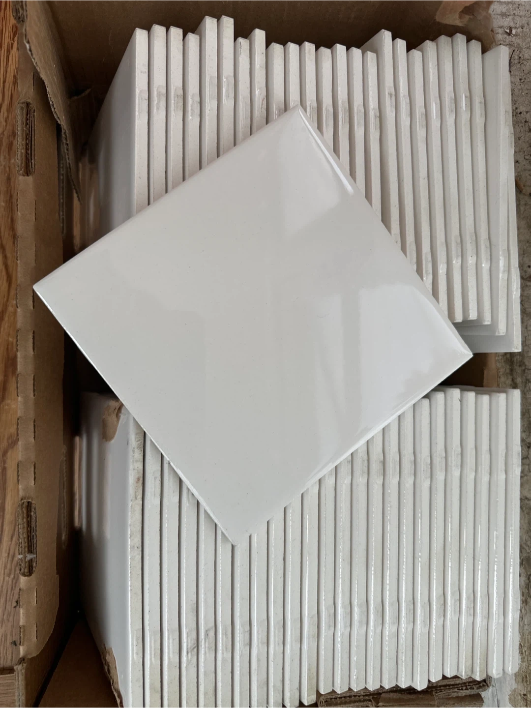 White glossy ceramic tiles, perfect for backsplash or accent walls. These are individual tiles, exactly 49 in the box. They're a classic choice for a clean, bright look in your home!