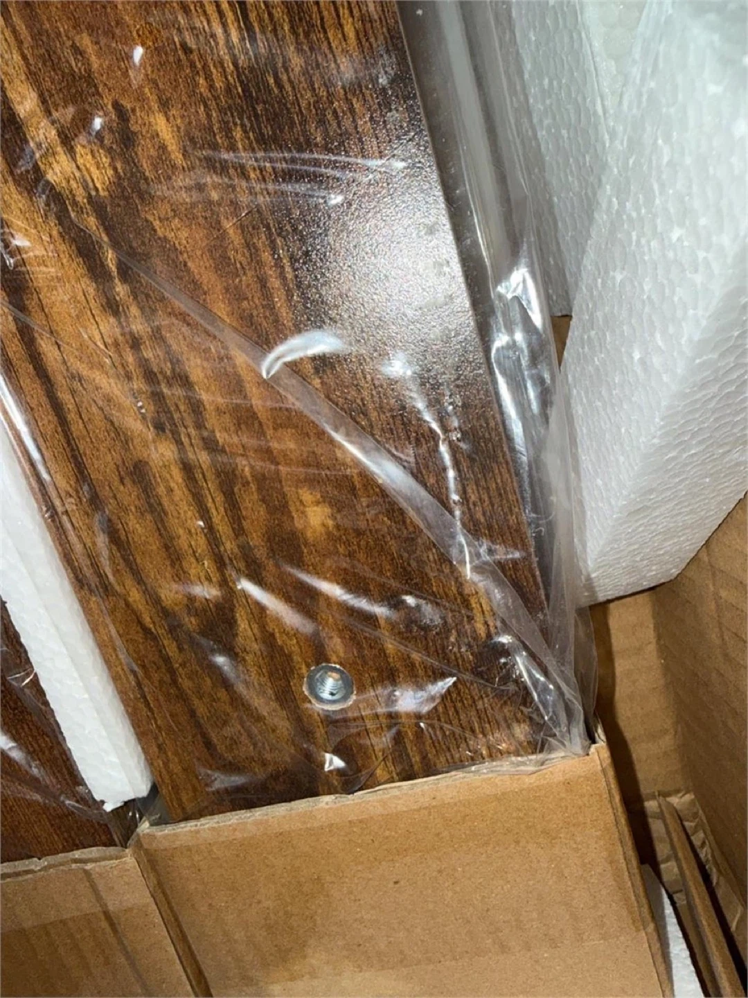 Queen size bed frame with a rustic wood headboard and metal frame. Slatted design provides mattress support. Easy assembly required.