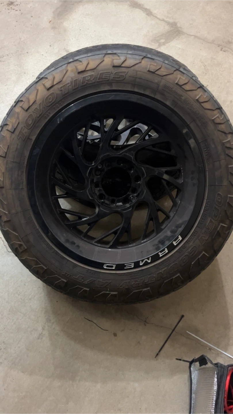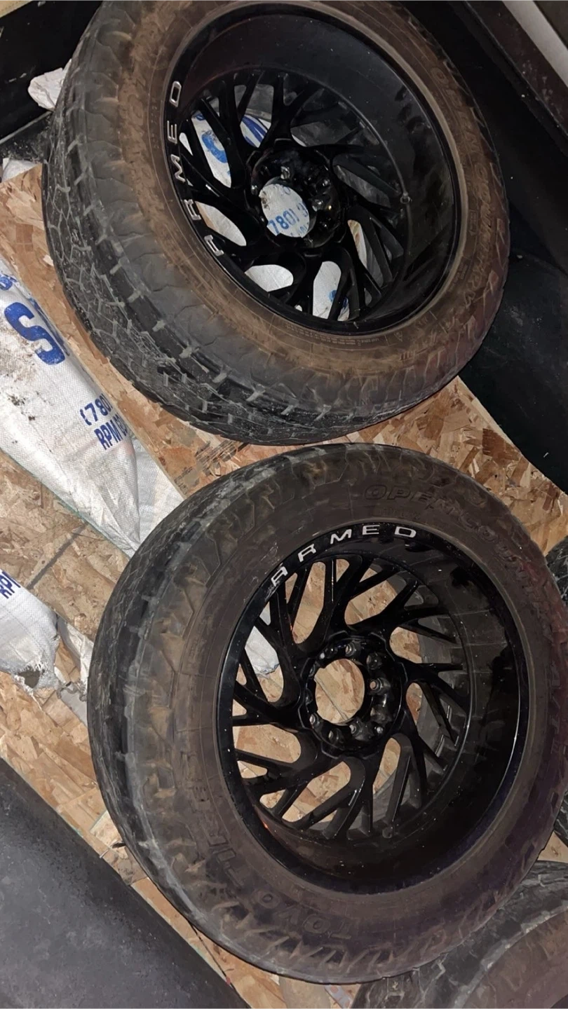 Selling a set of four ARMED Off Road wheels with TOYO Open Country A/T tires. These are aggressive all-terrain tires. Great for off-roading adventures!