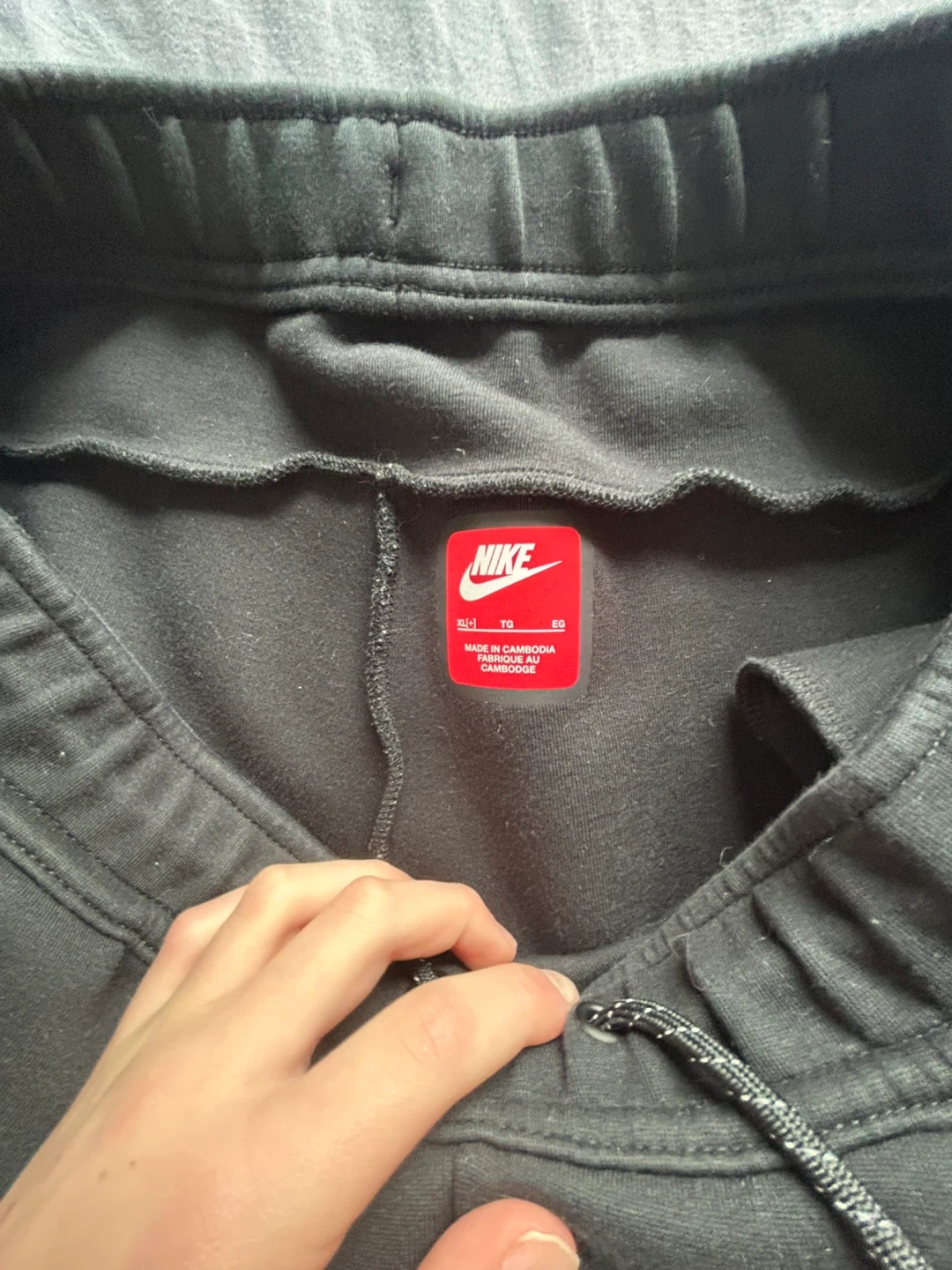 Black Nike Tech Fleece joggers. Features a drawstring waist and zipped pockets. Made from a soft, durable fabric.