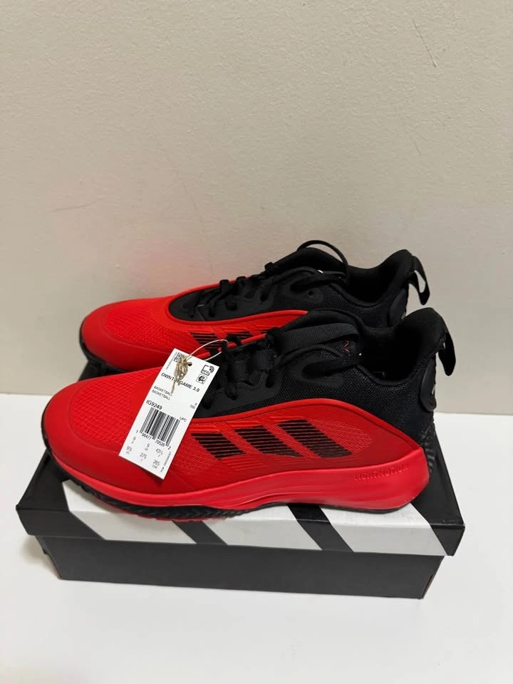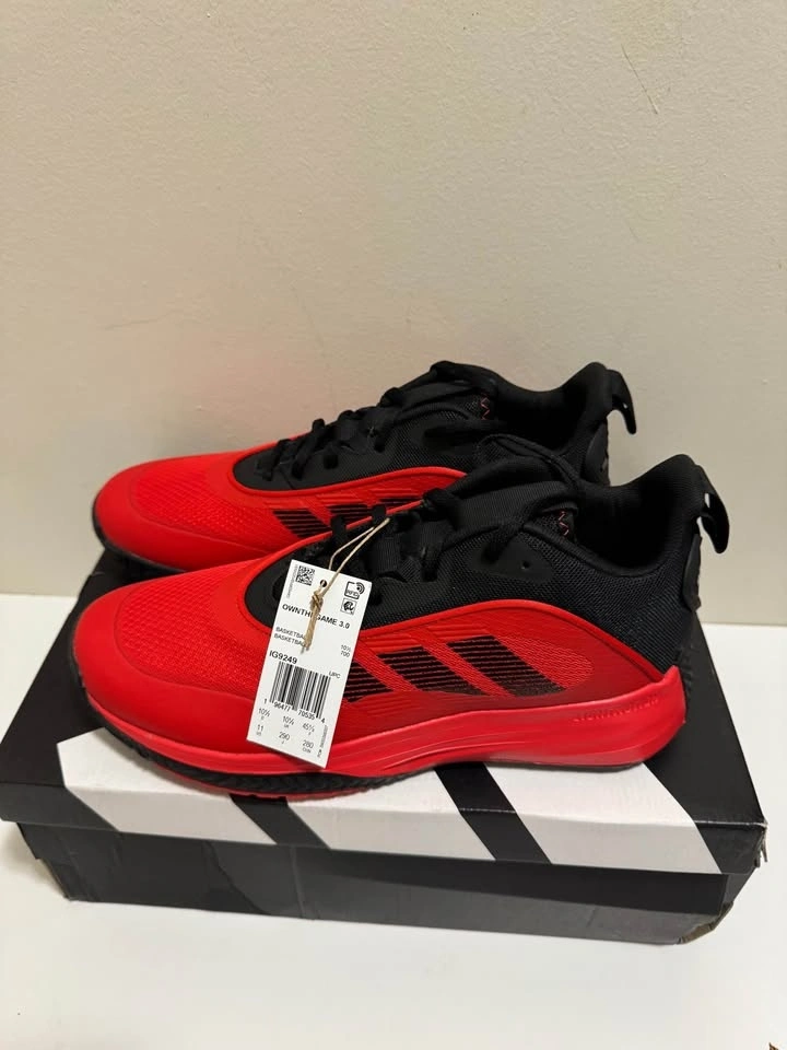 New Adidas Own The Game 3.0 basketball shoes in red and black. Brand new in box with tags. Pick up only. Located near Brampton Gateway Terminal and Shopper World Mall Brampton. Address provided upon pickup confirmation. Cash only.