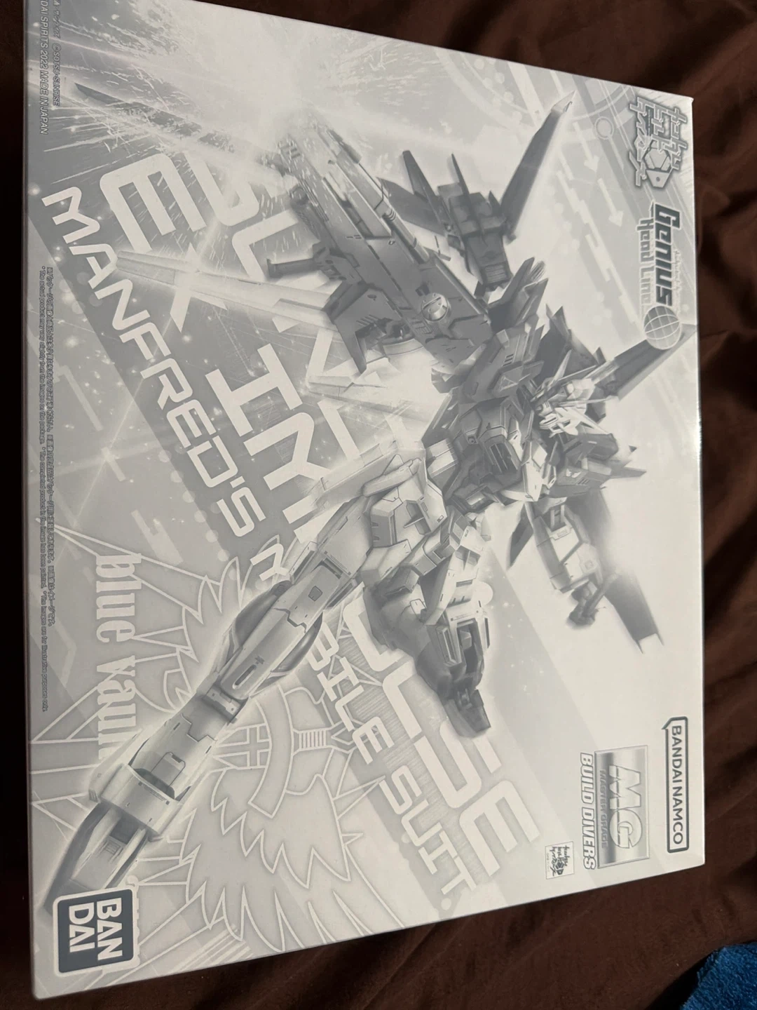 This is a Master Grade model kit of the EX Impulse Mobile Suit from Gundam Build Divers, specifically Manfred's variant. It's the Blue Vault version. Instructions and original packaging are included.