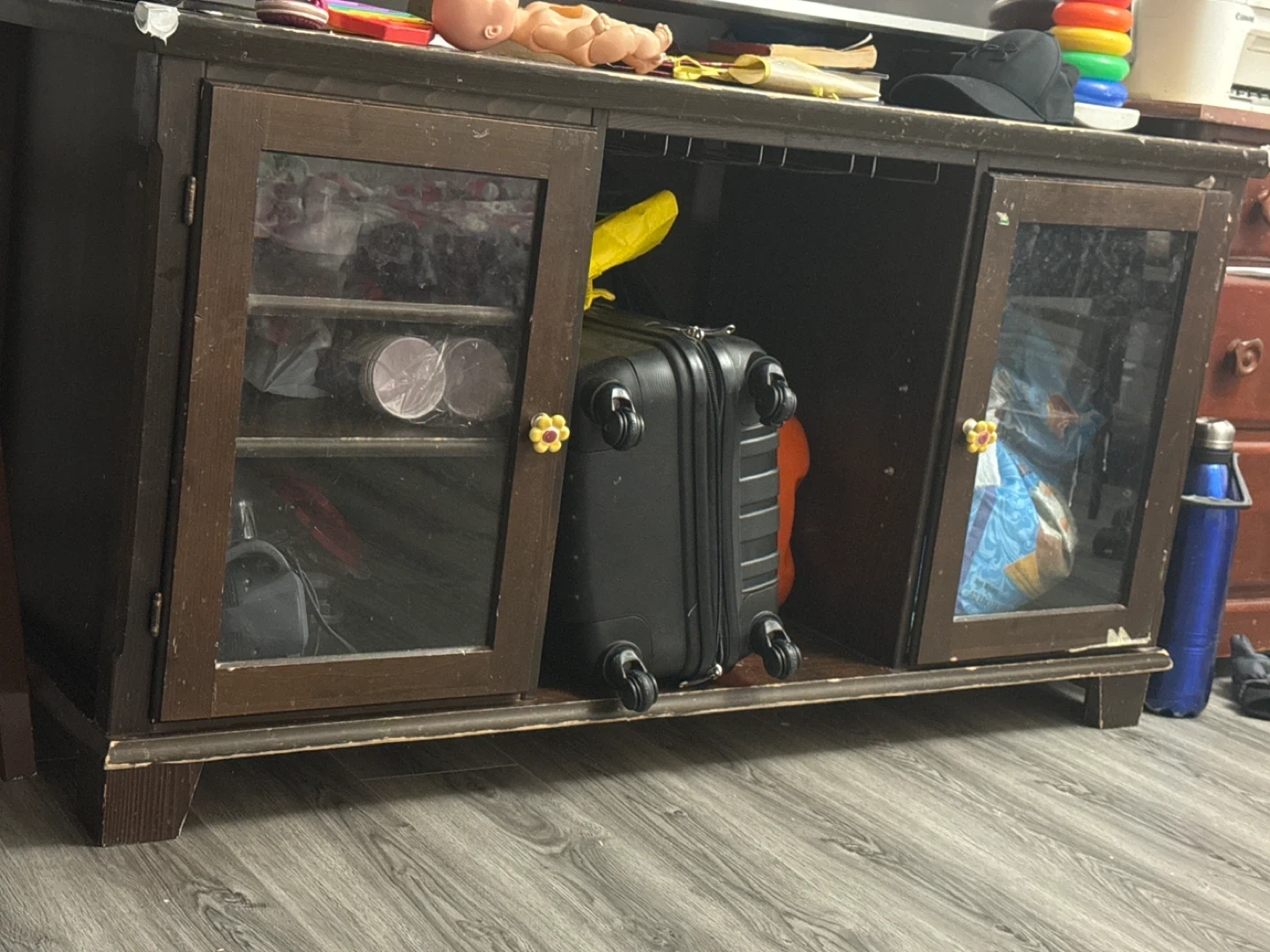 Dark Wood TV Stand with Glass Doors