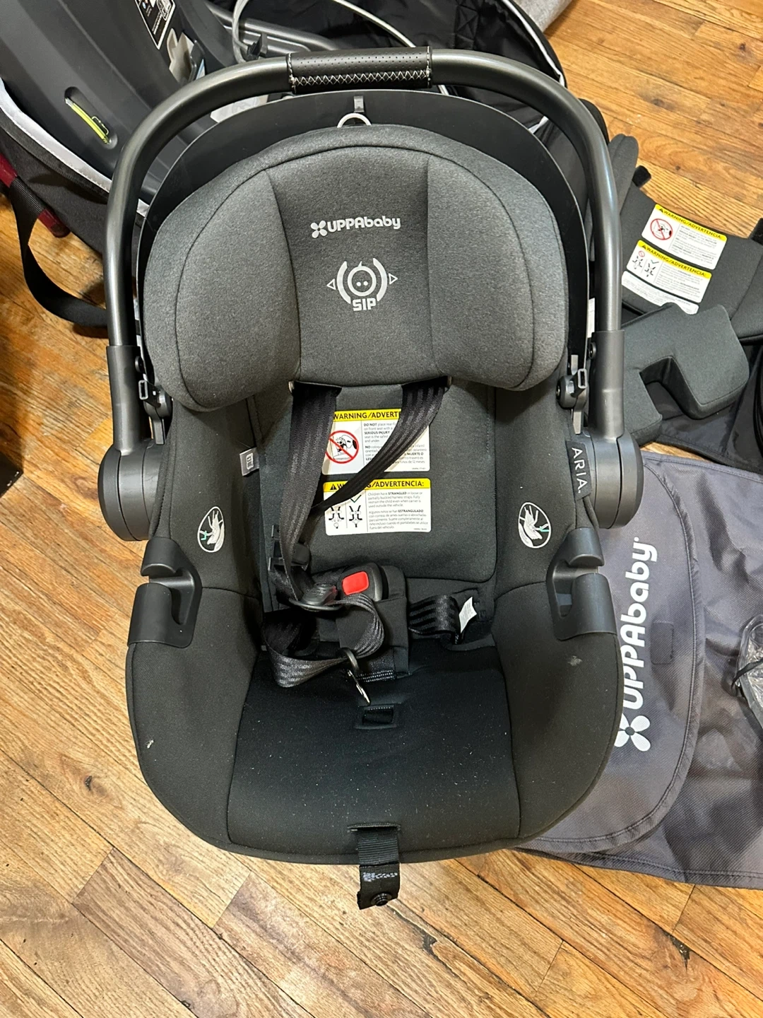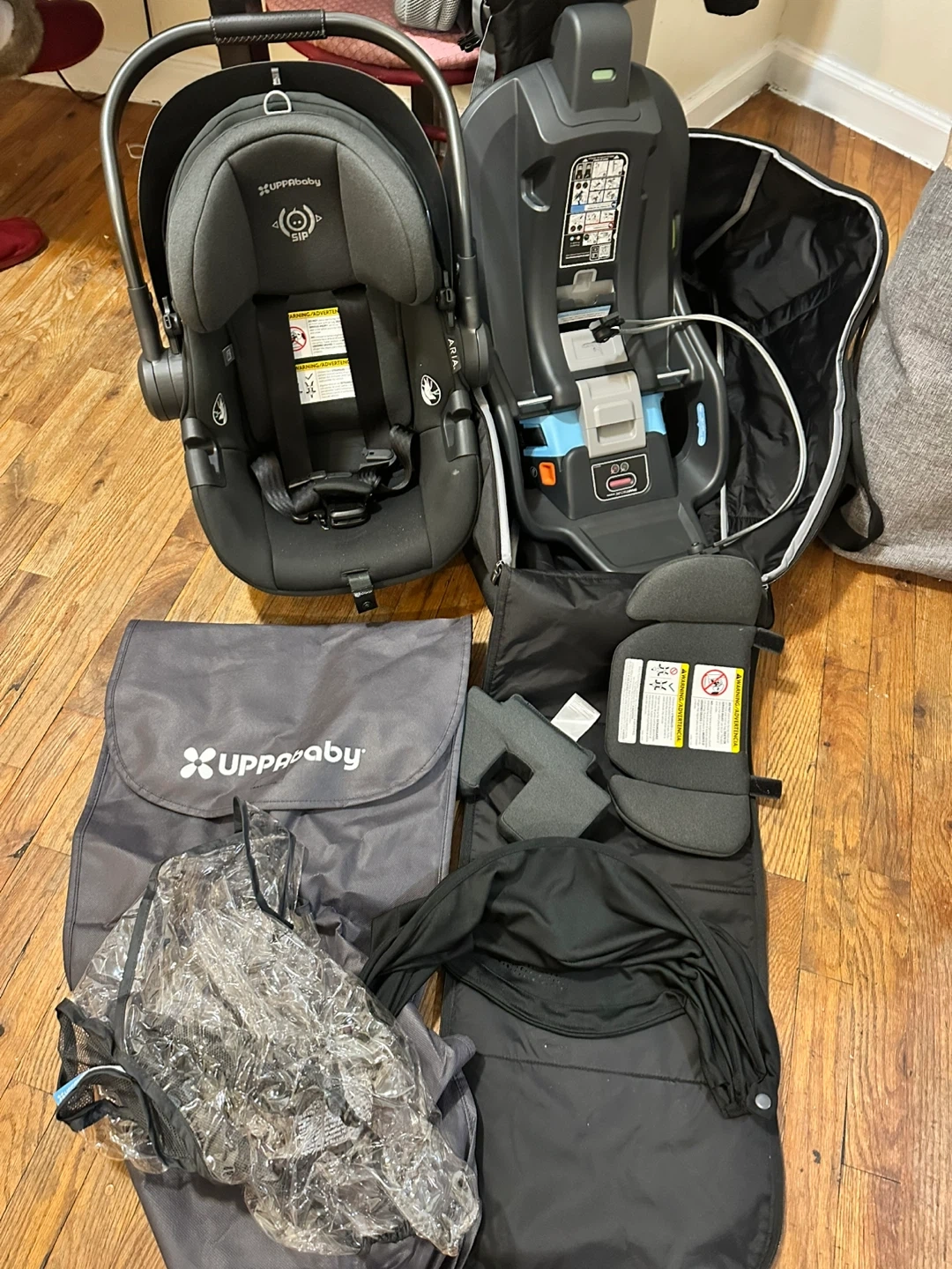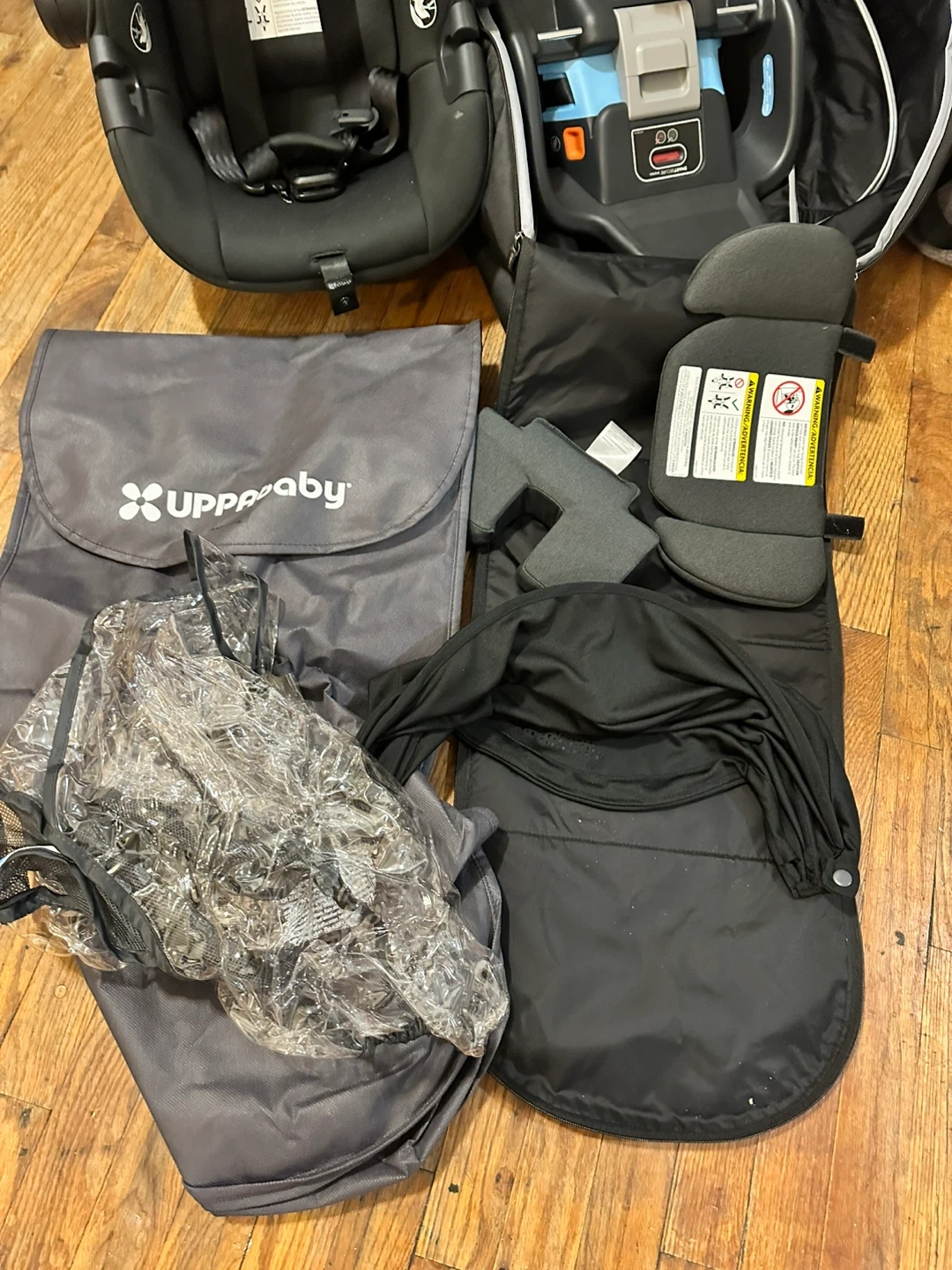 Includes: base, seat, rain protector, travel bag, newborn pad.