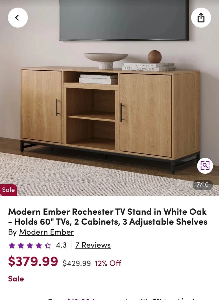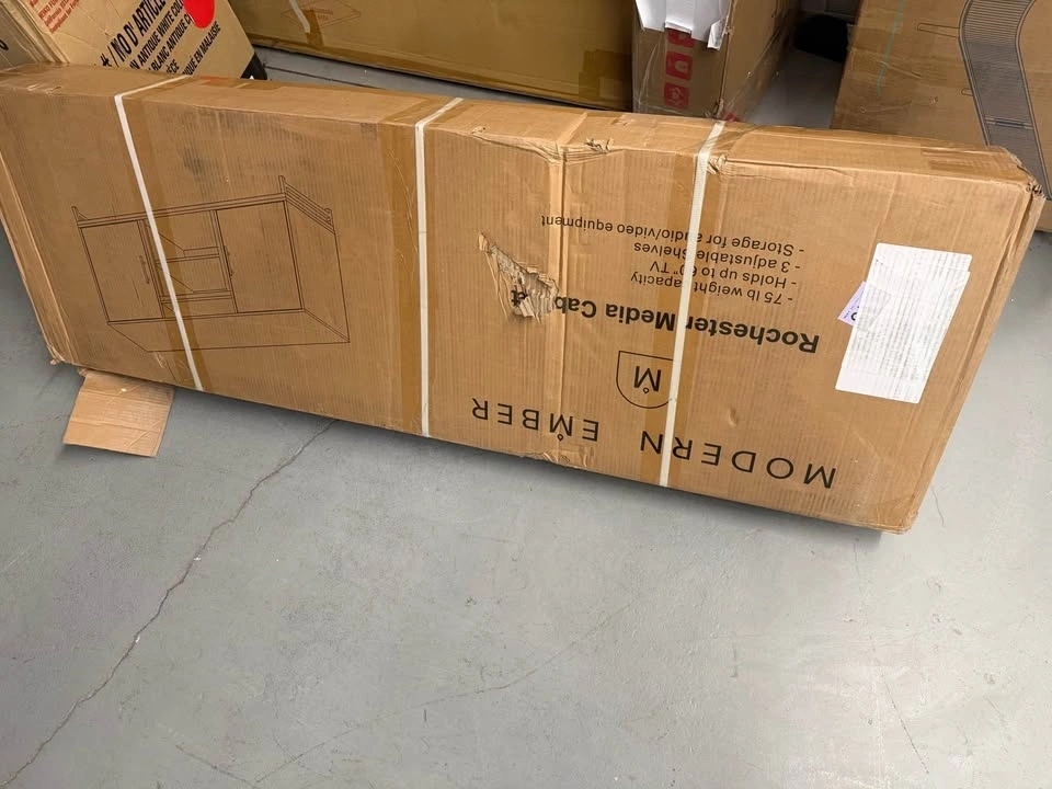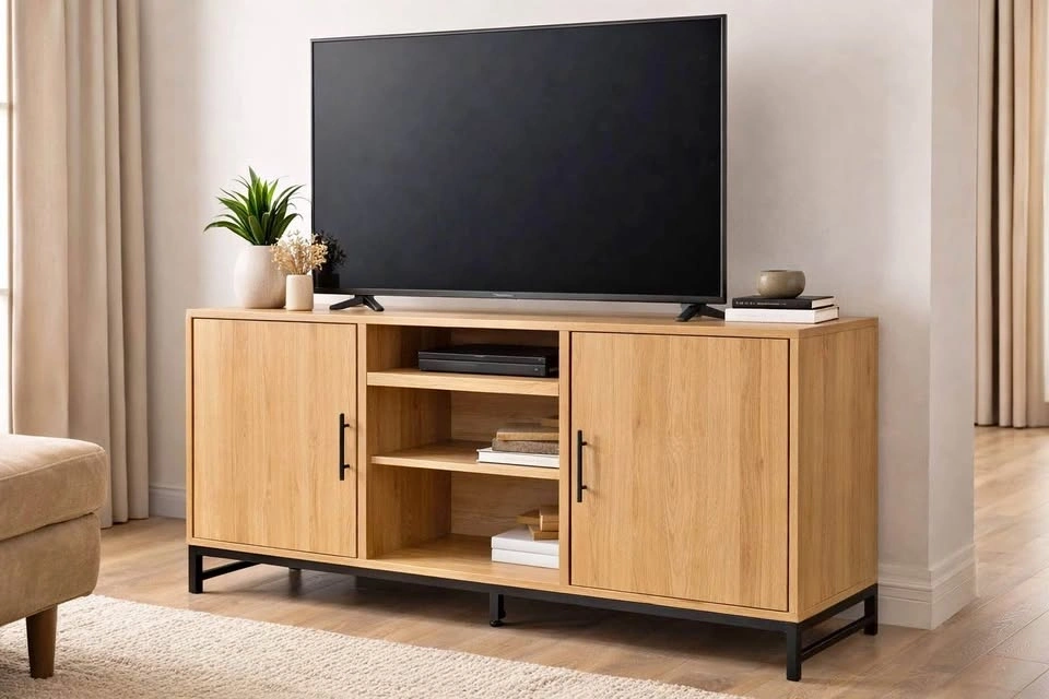 Retails for $429 with tax. My price: $270. Beautiful premium oak TV stand / media console with a clean modern design. Solid, sturdy build with a high-end finish. Perfect size for most living rooms and condos. Fits large TVs comfortably and keeps everything organized with a clean look. Brand new, premium oak finish, sleek black metal base, functional storage with shelves + cabinets, strong and durable construction. Dimensions: 56” W x 15.9” D x 27.2” H. Pickup in midtown Toronto or North York.