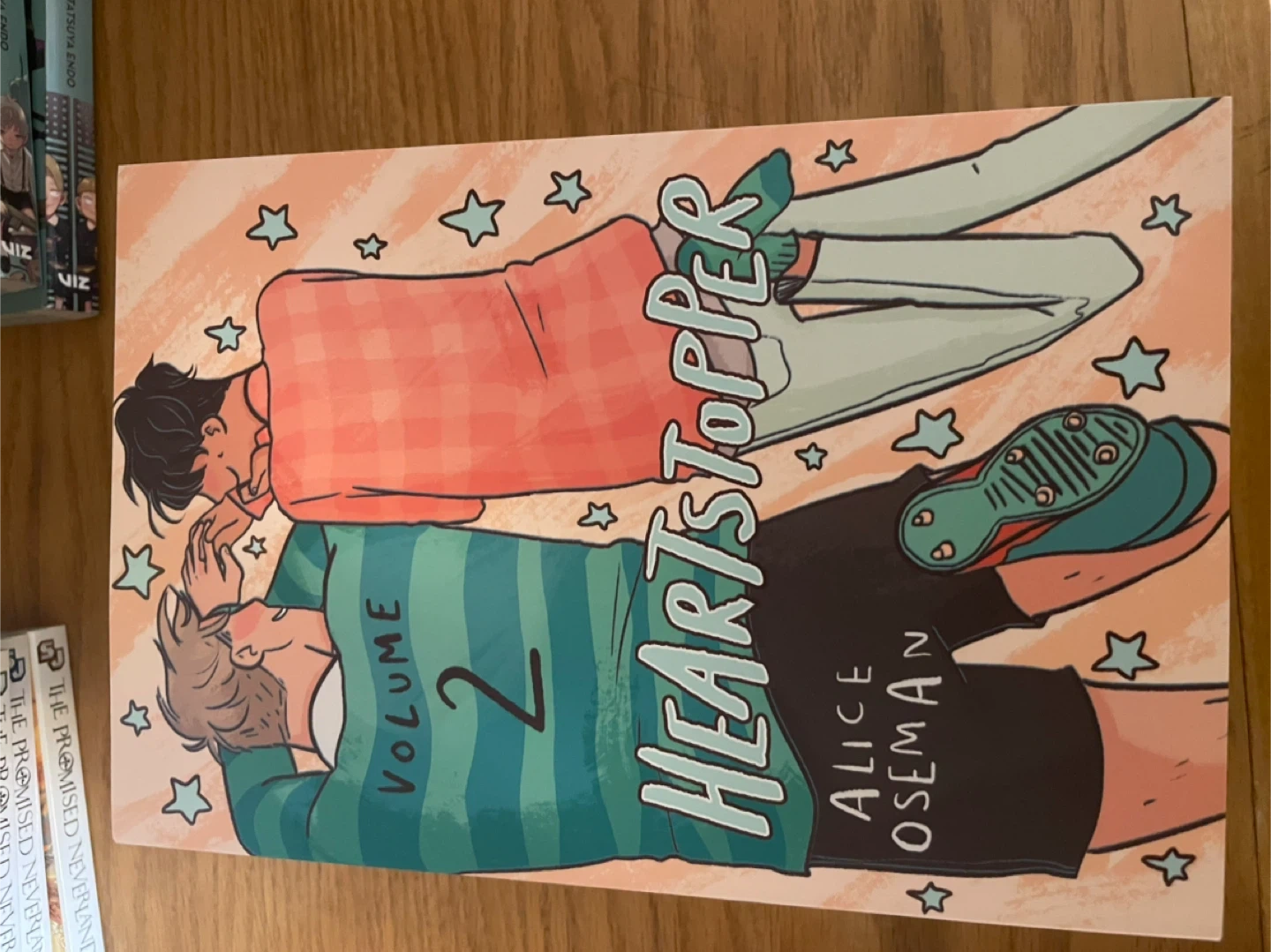 This is Heartstopper Volume 2, a graphic novel by Alice Oseman. It follows the story of Nick and Charlie's developing relationship. This book is perfect for fans of sweet, romantic coming-of-age stories.