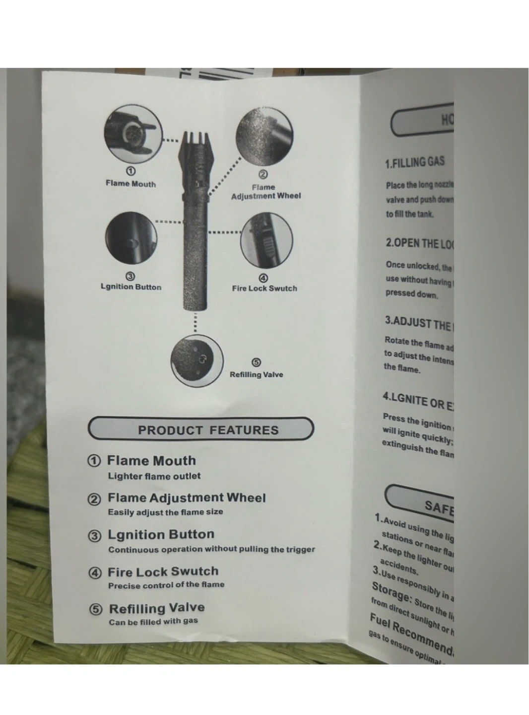• Lock switch for continuous flame