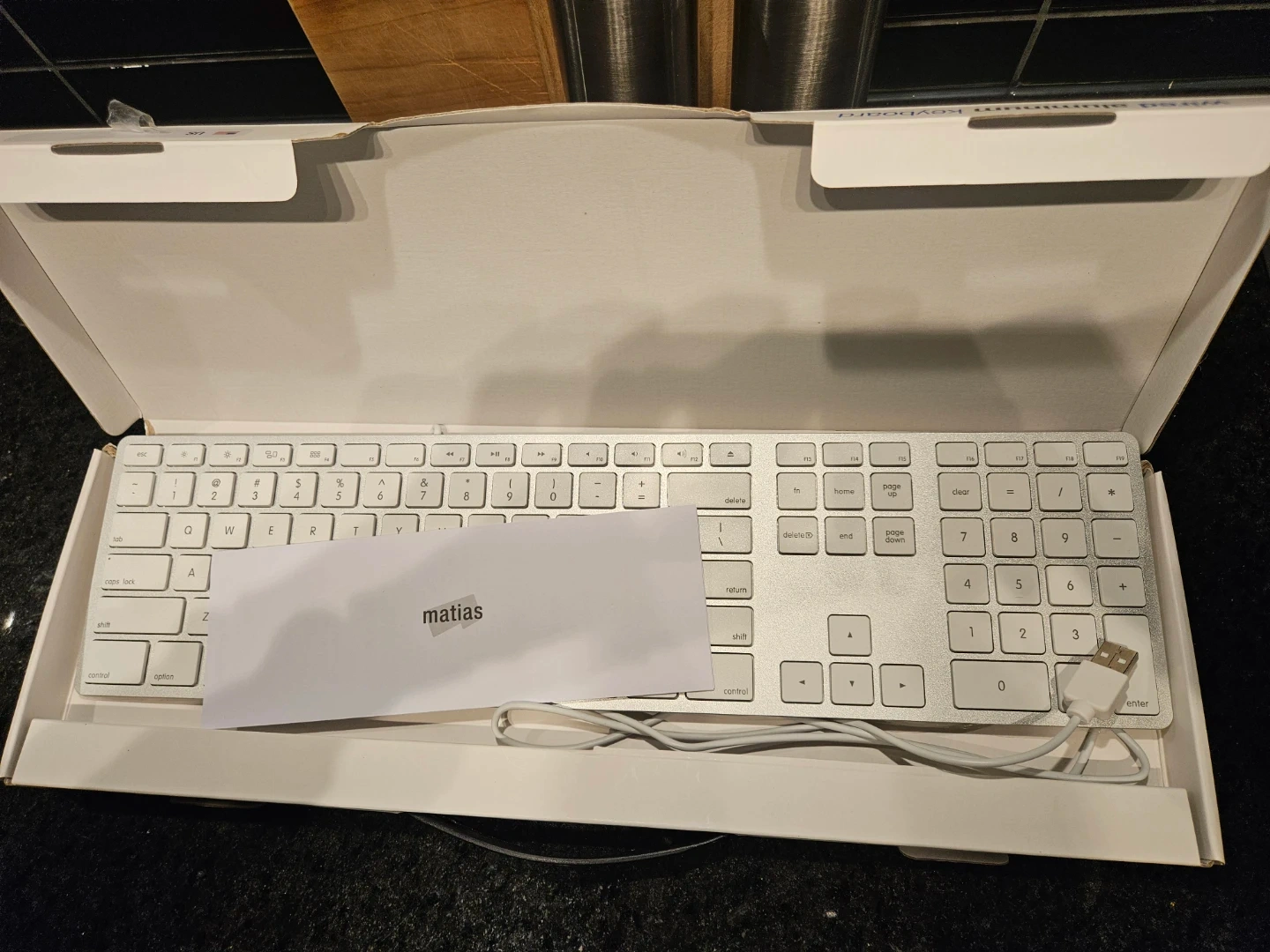 Selling a brand new Matias wired aluminum keyboard! It's still in the box and has never been used. Comes with all original packaging and components. Perfect for anyone looking for a reliable and stylish keyboard for their setup