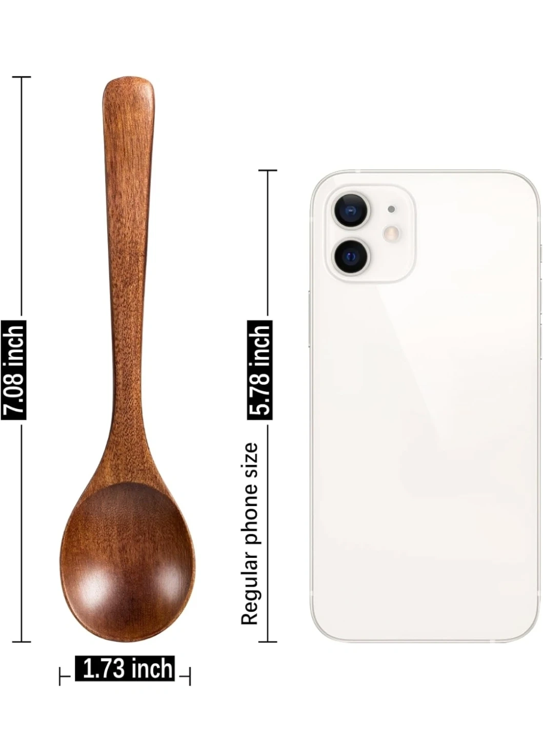 7PC Natural Hardwood Wooden Spoon Set | 7" Tea Coffee Honey