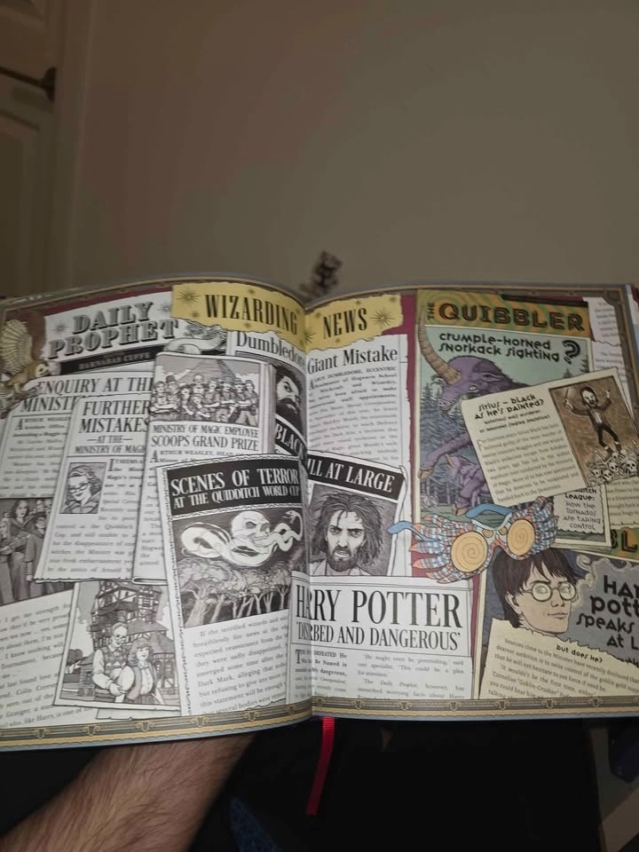 First Edition of the Wizarding Almanac in pristine condition. It contains everything from Harry Potter family history to all the wizarding world history, going back to the first wizards. Includes maps, forest maps, a detailed Hogwarts map, and information on all the monsters and creatures in the Harry Potter universe, and so much more.