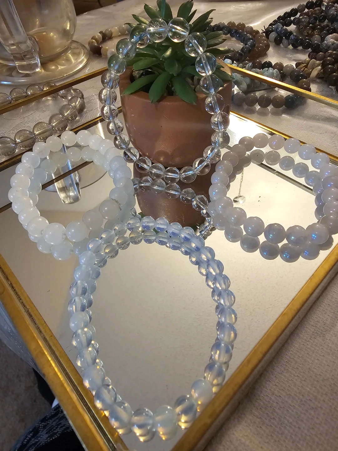Clear quartz, white jade ,moonstone &opallite bracelets