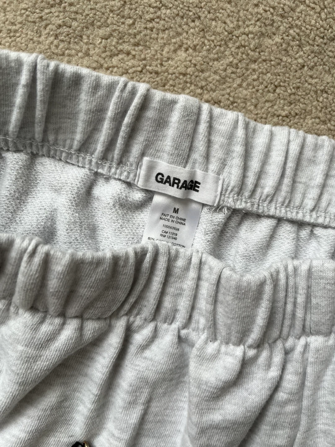 Comfy grey sweat shorts from Garage. These are a size medium and made with a cotton blend. Perfect for lounging around!