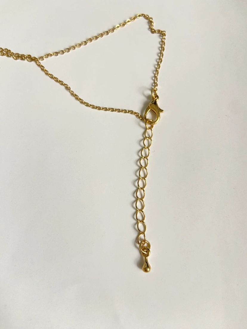 Gold tone necklace featuring two cat face charms, one black and one pearlized, with star and rhinestone accents. Adjustable clasp closure for a custom fit. Brand new, i brought it a while ago but never wear.