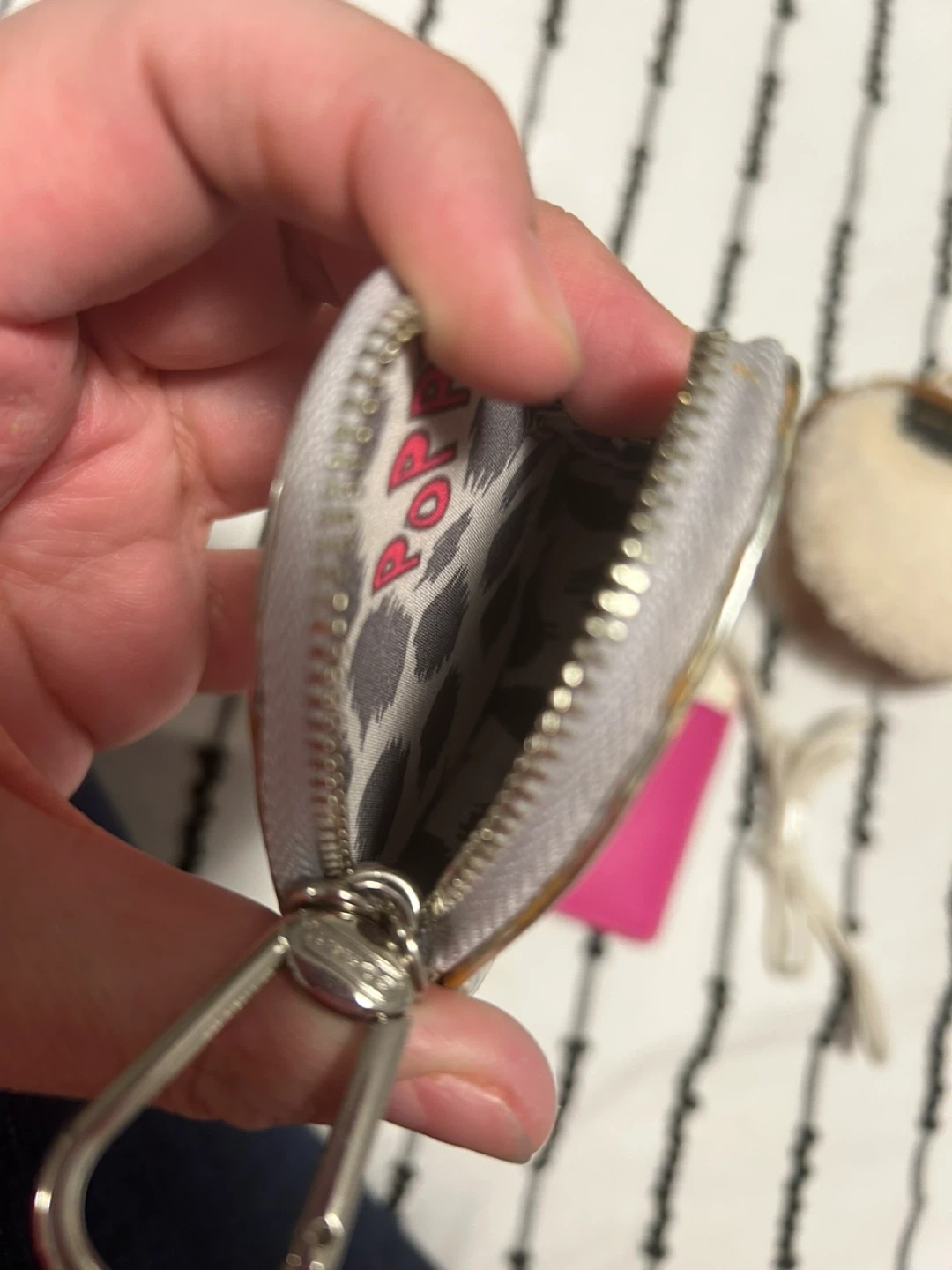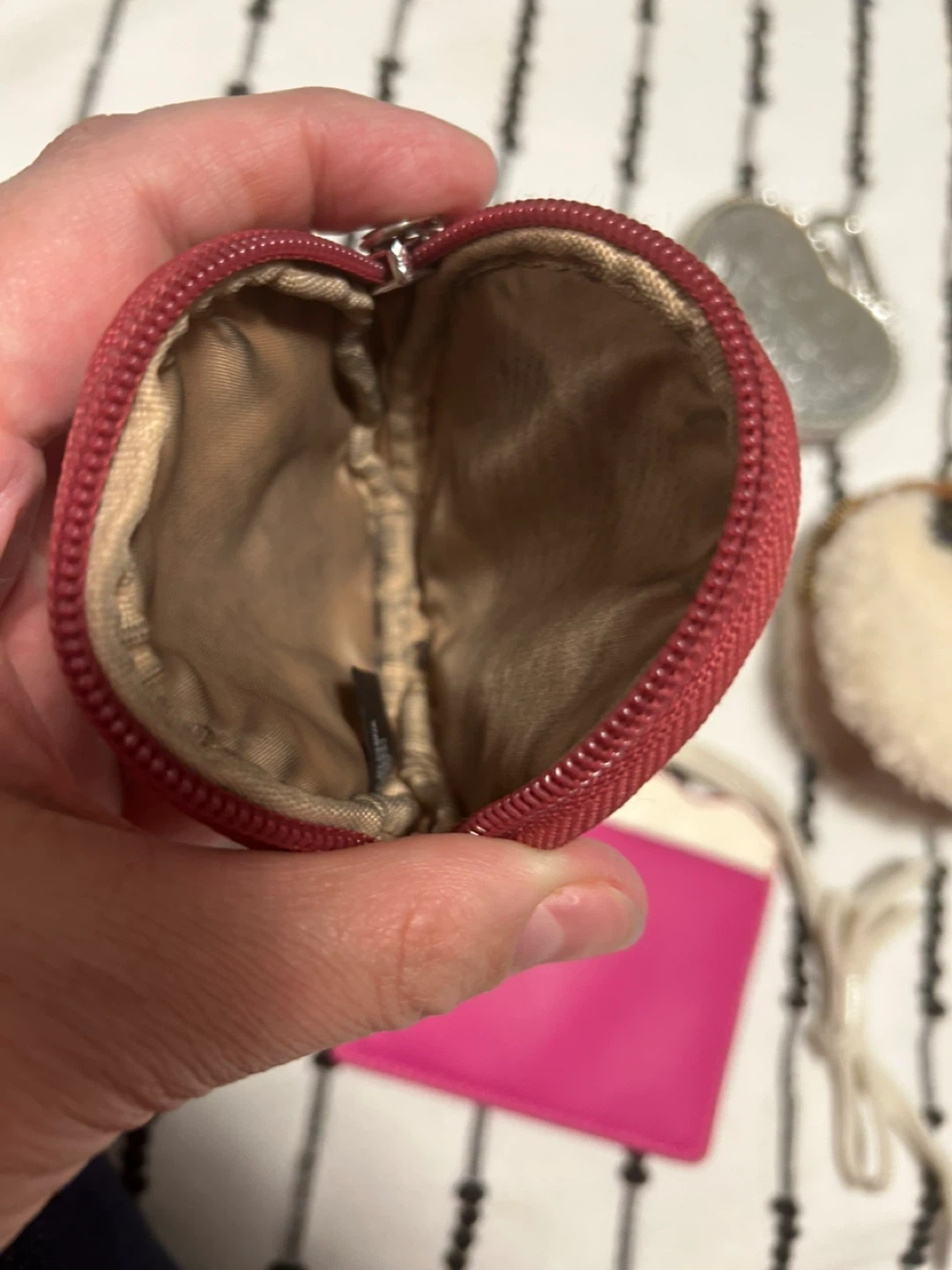 Cute little round coin pouch from Guess. It's red and features the Guess logo. Perfect for keeping loose change handy!