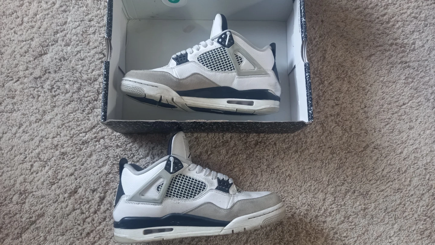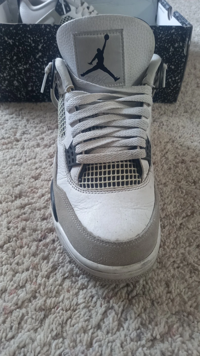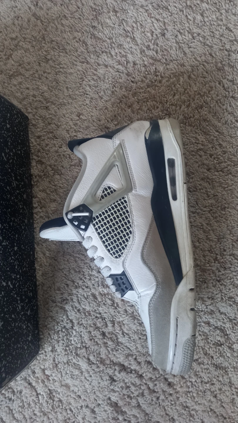 Clean pair of Black Air Jordan 4s, size 10. Worn but well taken care of still look great on feet and perfect for everyday use. No major flaws, just normal wear.