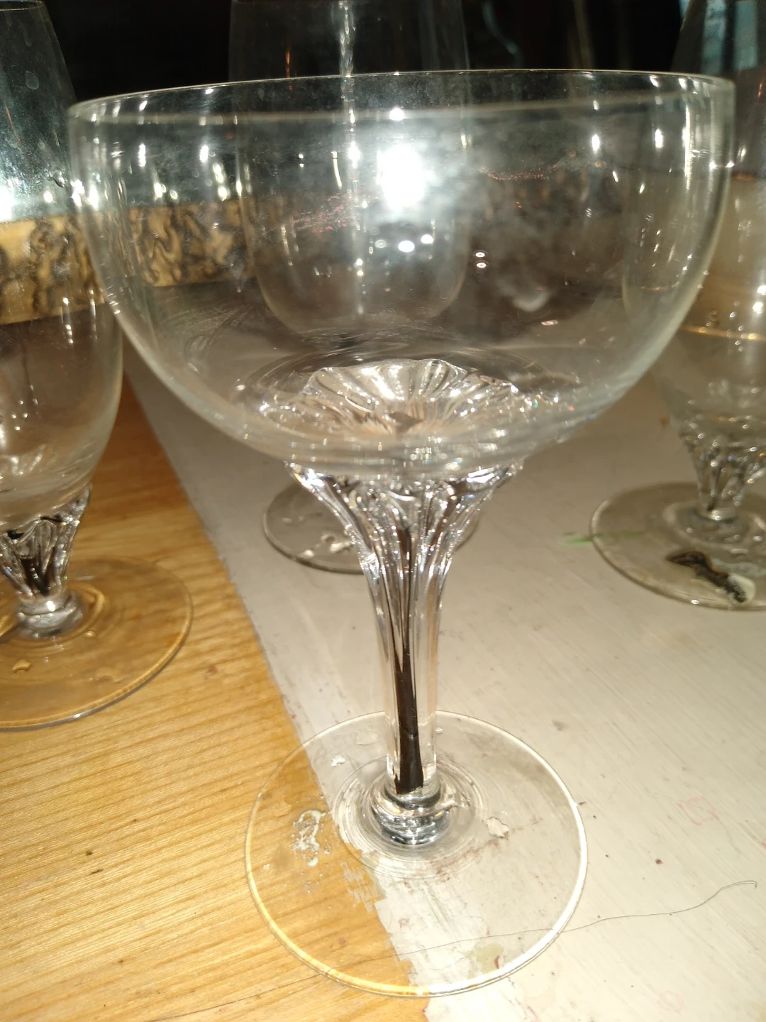 This is a set of five hand blown pieces of stemware from Czechoslovakia no longer made don't don't even longer have that country or company they are a rare fine to say the least and just exquisite they have iodine in the in the hand blown stems they're just lovely