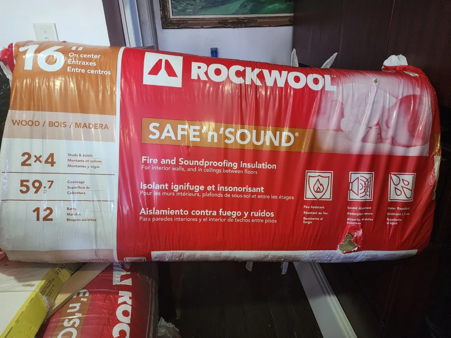 This ROCKWOOL SAFE'n'SOUND insulation offers fire and soundproofing for interior walls and ceilings between floors. It's designed for 2x4 studs and joists with a coverage of 59.7 sq. ft. It's water repellent, fire resistant, and sound absorbent. This insulation is great for home renovations!