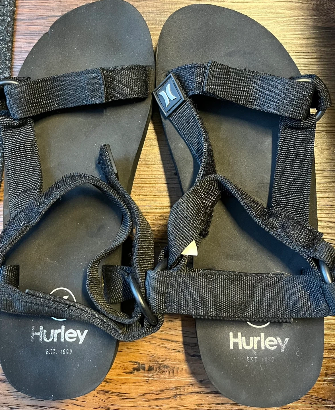 Hurley sport sandals with adjustable straps. Man-made materials with a textile upper. Size is 9M.