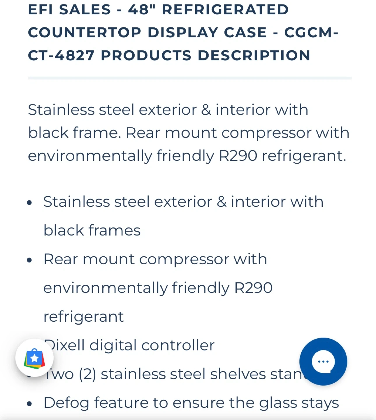 EFI Sales Refrigerated Display Case CGCM-CT-4827