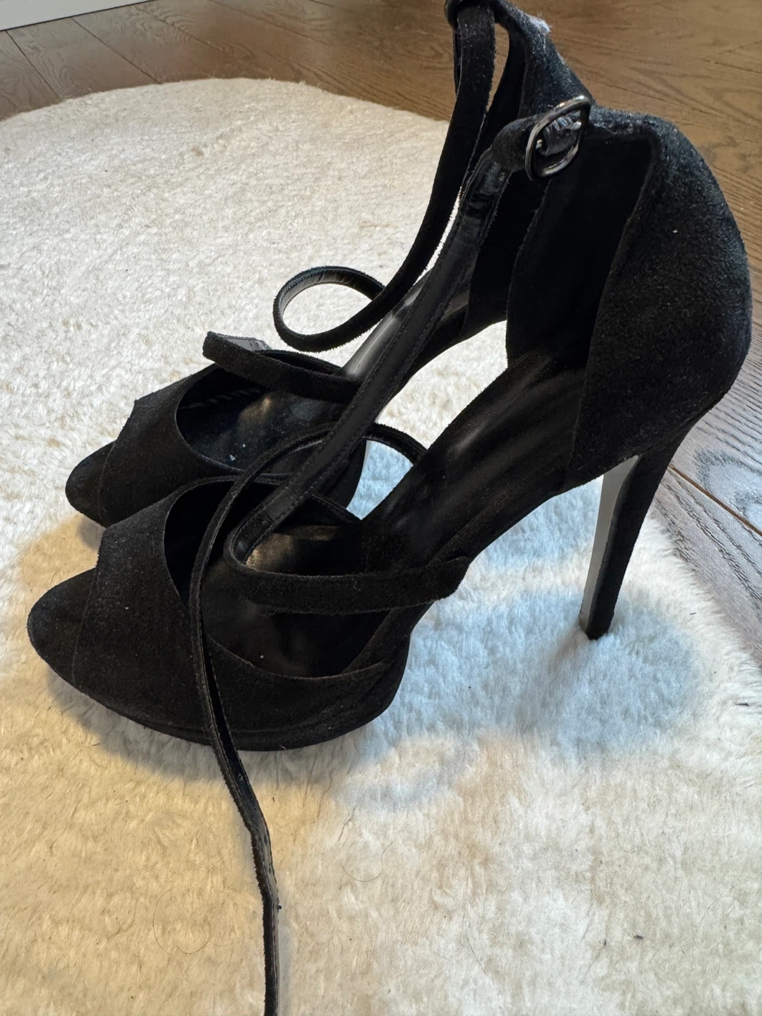 Black Suede Ankle Strap Heels - Size US 10 / EU 41