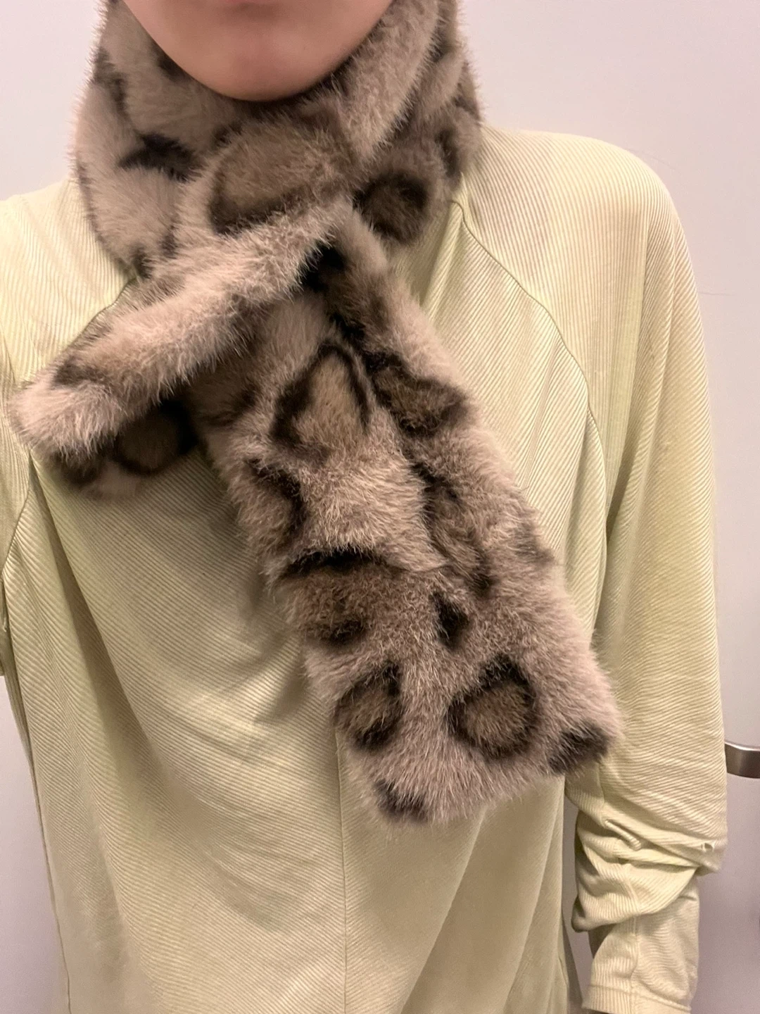 This soft, faux fur scarf features a stylish leopard print. It's cozy and adds a touch of flair to any outfit. Perfect for cooler weather!