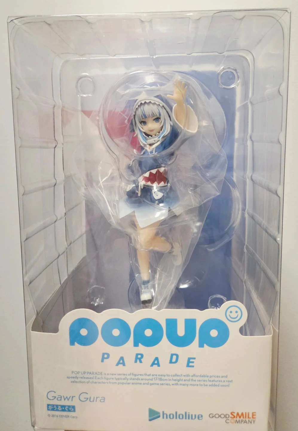 This POP UP PARADE (Good Smile Company) anime figure features vtuber Gawr Gura of Hololive. Purchased and imported from Japan when I was an avid vtuber watcher.