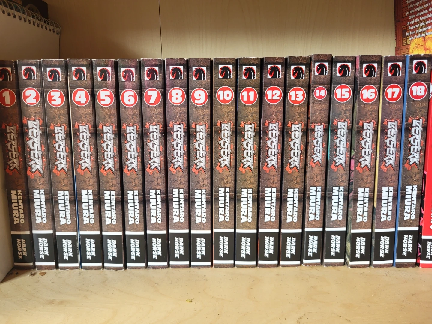 These are volumes 1 through 18 of the Berserk manga series by Kentaro Miura. They are published by Dark Horse Comics. Collection includes volumes 1 to 18.