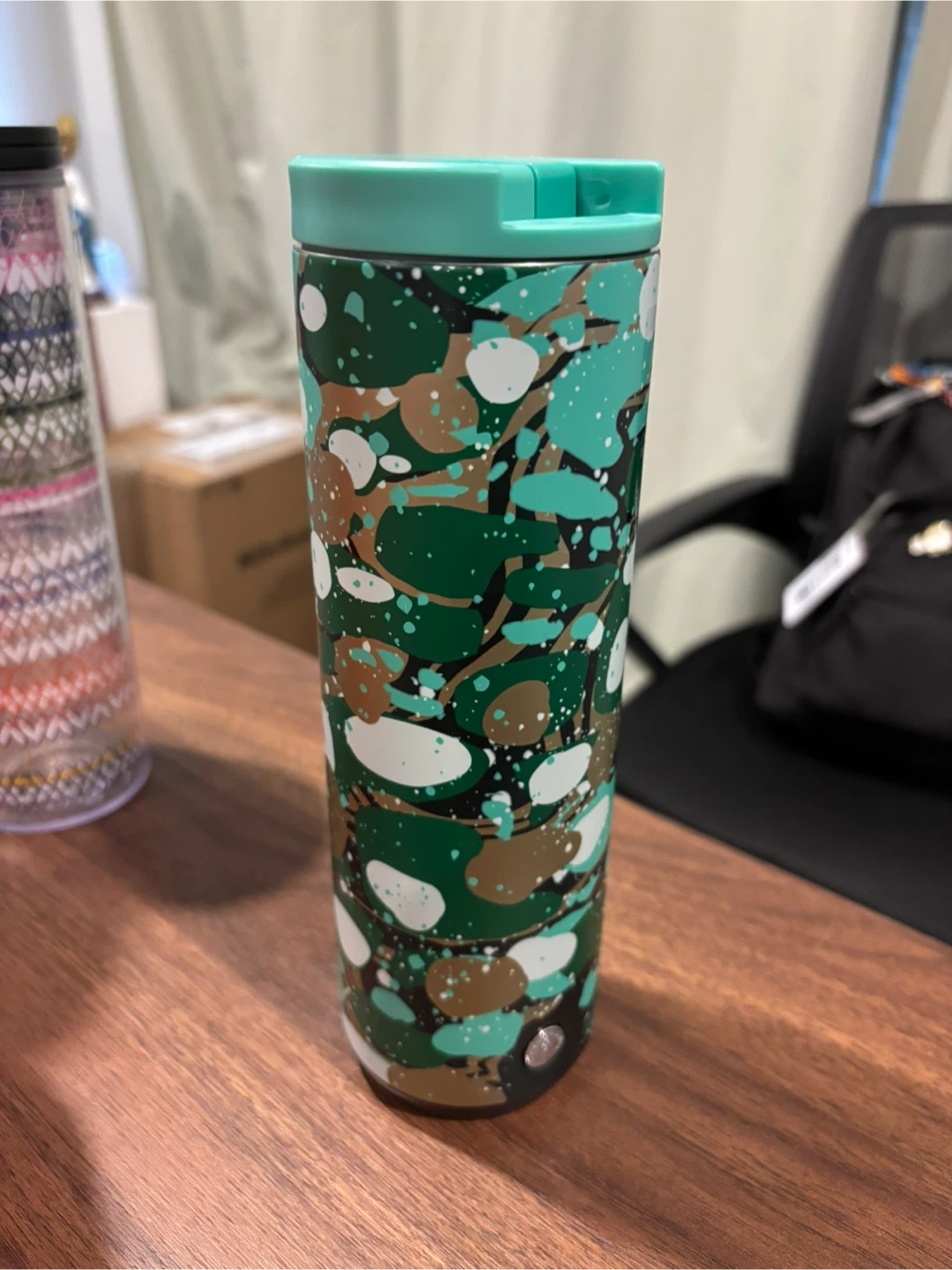 This Tervis tumbler features a cool green camouflage pattern. It's designed for keeping your drinks hot or cold. Great for on-the-go use!