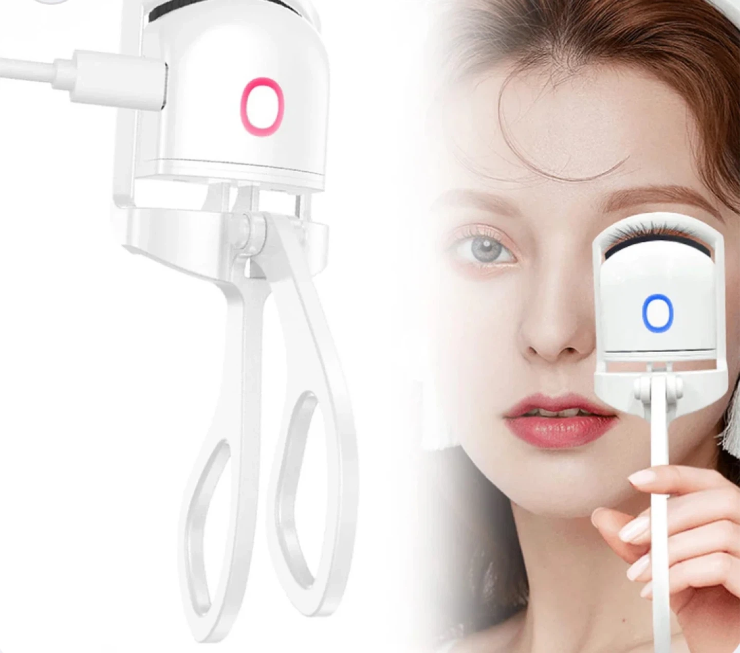 White Electric Eyelash Curler with USB Charging Cable