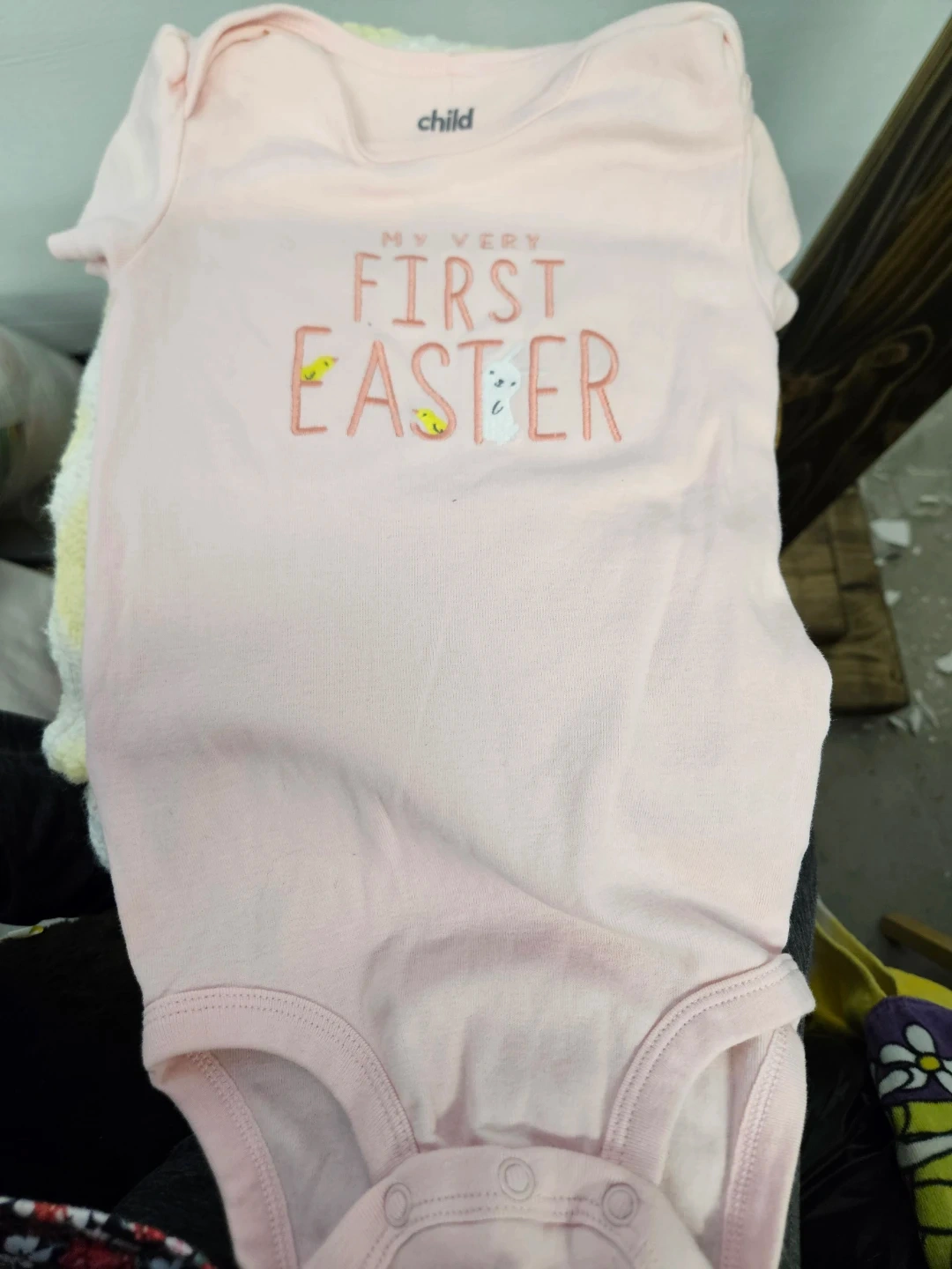 This sweet pink onsie from Child of Mine by Carter's is perfect for your little one's first Easter celebration. It features "My Very First Easter" embroidered on the front with cute bunny and chick graphics. Size is 18 months. It's made of soft, breathable fabric for comfort.