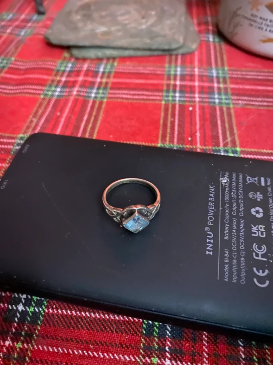 Selling a lovely silver ring featuring a beautiful blue stone. It's in great condition and ready to add a touch of elegance to your style