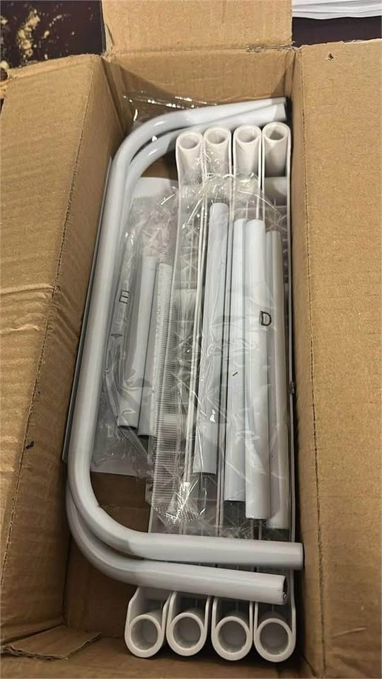 Brand new Kitsure 2-tier shoe rack. White color. Still in box, unassembled. Has handles, non-slip feet, and is rust-resistant. Good for organizing your shoes.