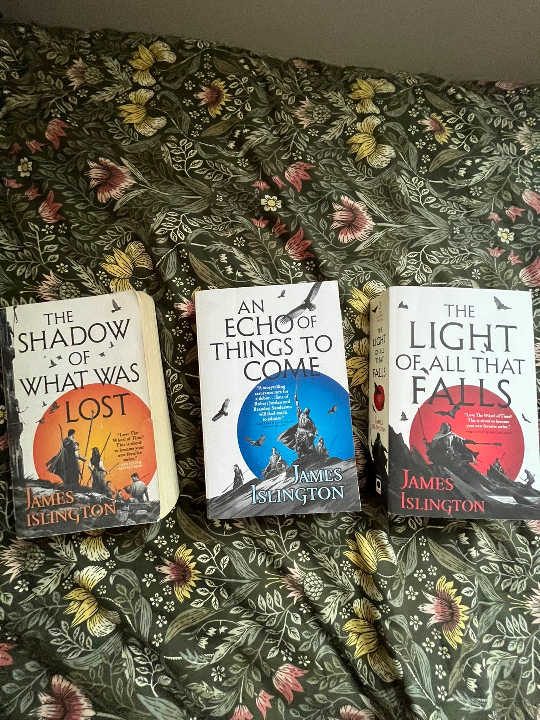 The Shadow of What Was Lost, An Echo of Things to Come and The Light of All That Falls by James Islington. All paperback.